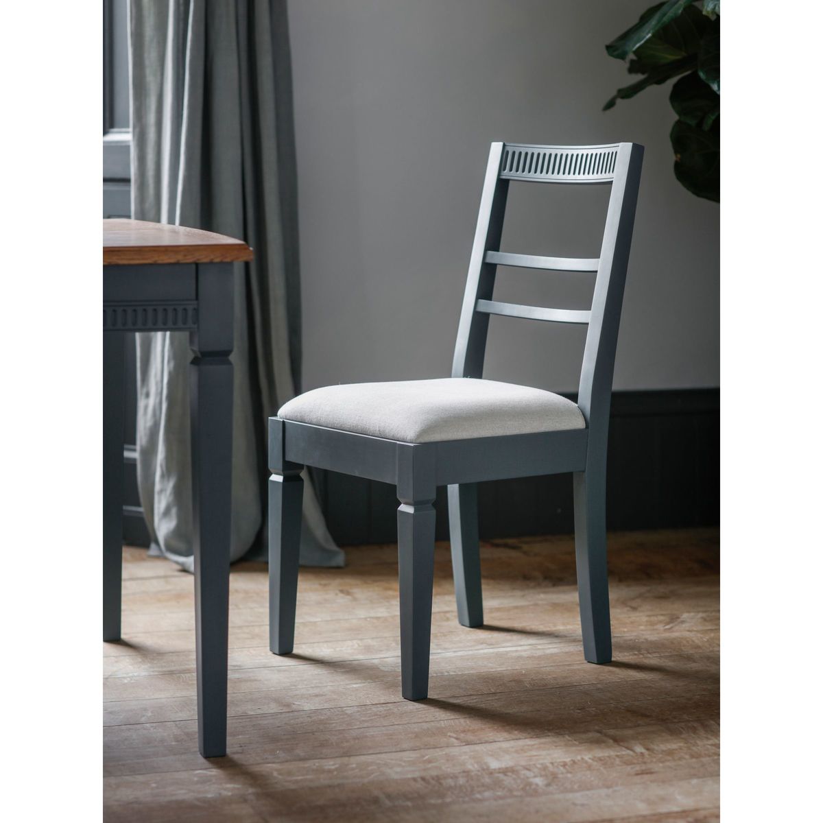 The timeless design of the Bronte dining chairs make them easy to style with both modern and more rustic dining tables. Supplied as a pair, they're made from painted solid mahogany and the back rest is accented with an inlaid parquet pattern that's made from oak veneers. You'll sit comfortably thanks to the plush foam-filled seat, which is upholstered in a linen fabric for a premium finish.