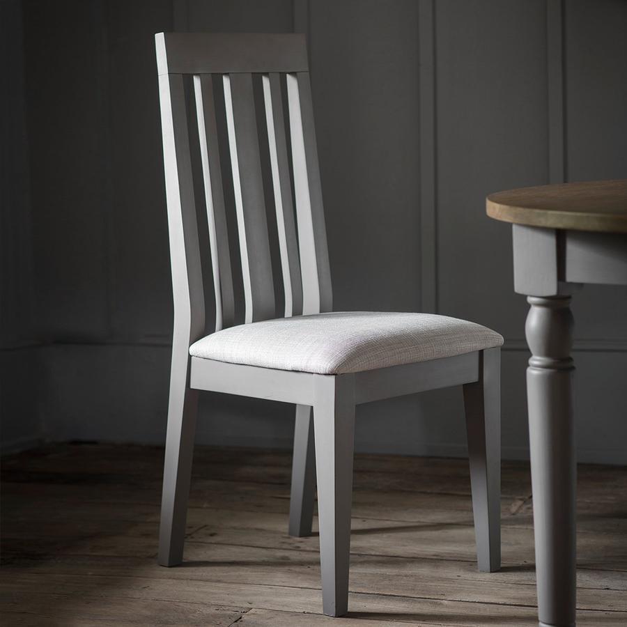 Get your hands on this pair of Gallery Direct Cookham dining chairs in grey, two wonderfully elegant chairs offering both exceptional style and comfort. Crafted into a simple and sophisticated design with five vertical bars in varying widths, the seat pad matches this soft and elegant feel with a light natural woven fabric in a cool grey tone. Grey-finished items of furniture can tie in with so many different materials and design schemes. For example, you can mix and match these chairs with untreated wood for a modern, rustic feel, or pair with high gloss surfaces for a contemporary look.