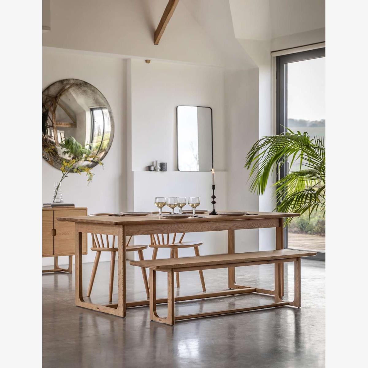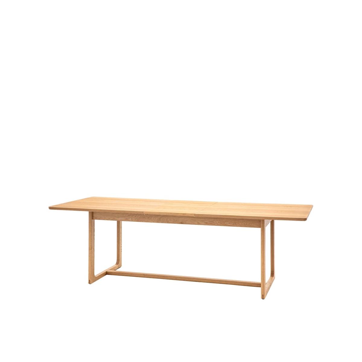 Introduce a touch of modern sophistication to your home with the Craft dining table from Gallery Direct. Its smooth oak surface extends with ease, providing versatile space for any occasion. A thoughtfully shaped underframe adds a subtle architectural element to the minimalist design.