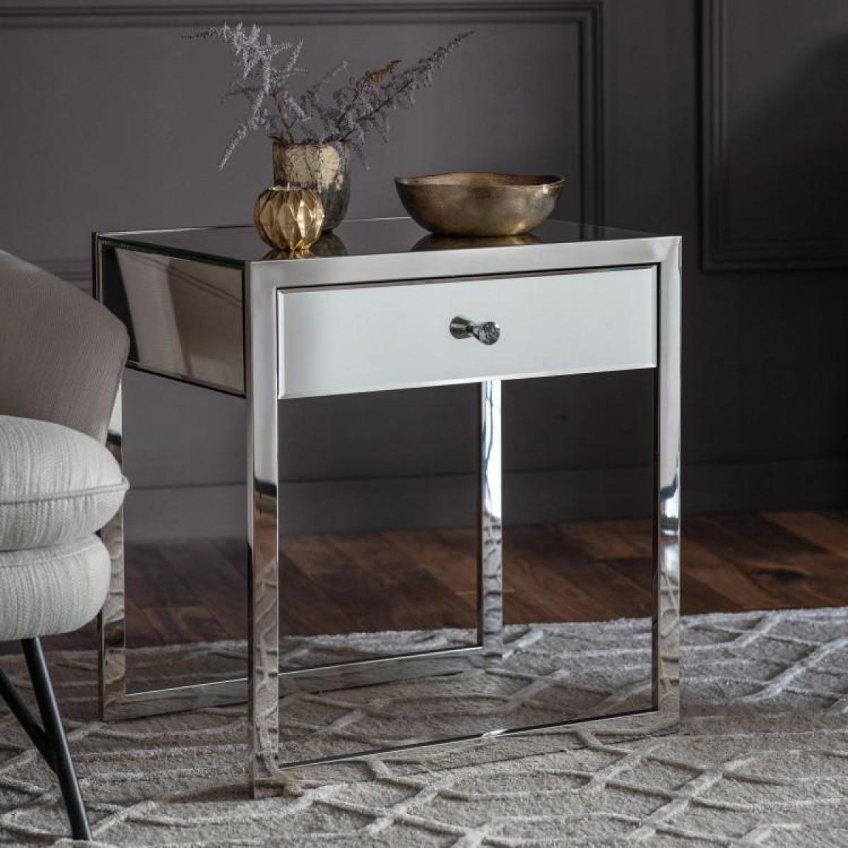 The Cutler 1 Drawer Mirrored Side Table, offers elegance and sophistication. This piece instantly catches the eye with it's stunning mirrored finish and contemporary vibe. Great for creating effect whilst giving practicality with it's handy drawer. The ultimate glamorous vibe!. *Moot Trading Ltd is not a lender and acts only as an introducer. The credit product is provided by Klarna Bank AB (publ). Credit is only available to permanent UK residents aged 18 and over, subject to status. Terms and conditions apply. Please note that the following products are not regulated by the FCA: Pay in 30 days and Pay in 3 instalments. Read More.
