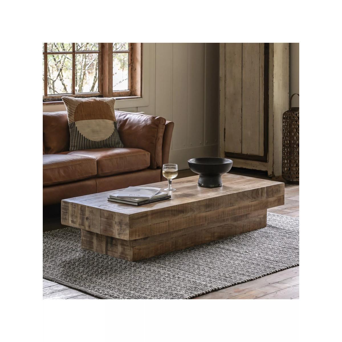 Add a contemporary rustic touch to a room with this coffee table. The piece is cleverly designed to look like solid blocks of cross-sawn timber but is actually produced using architectural veneers for stability and practicality. The dry weathered finish enhances the design. Want to see it first? You may want to see and get a feel for the furniture in one of our shops before ordering. We'll be able to tell you where the range you'd like to view is on display.