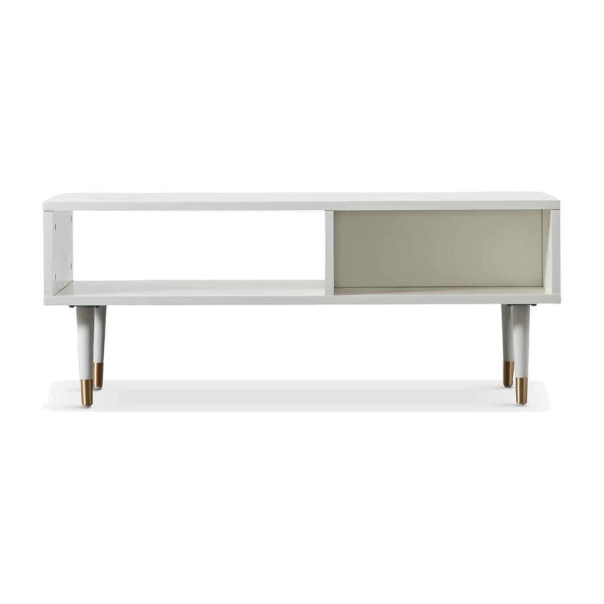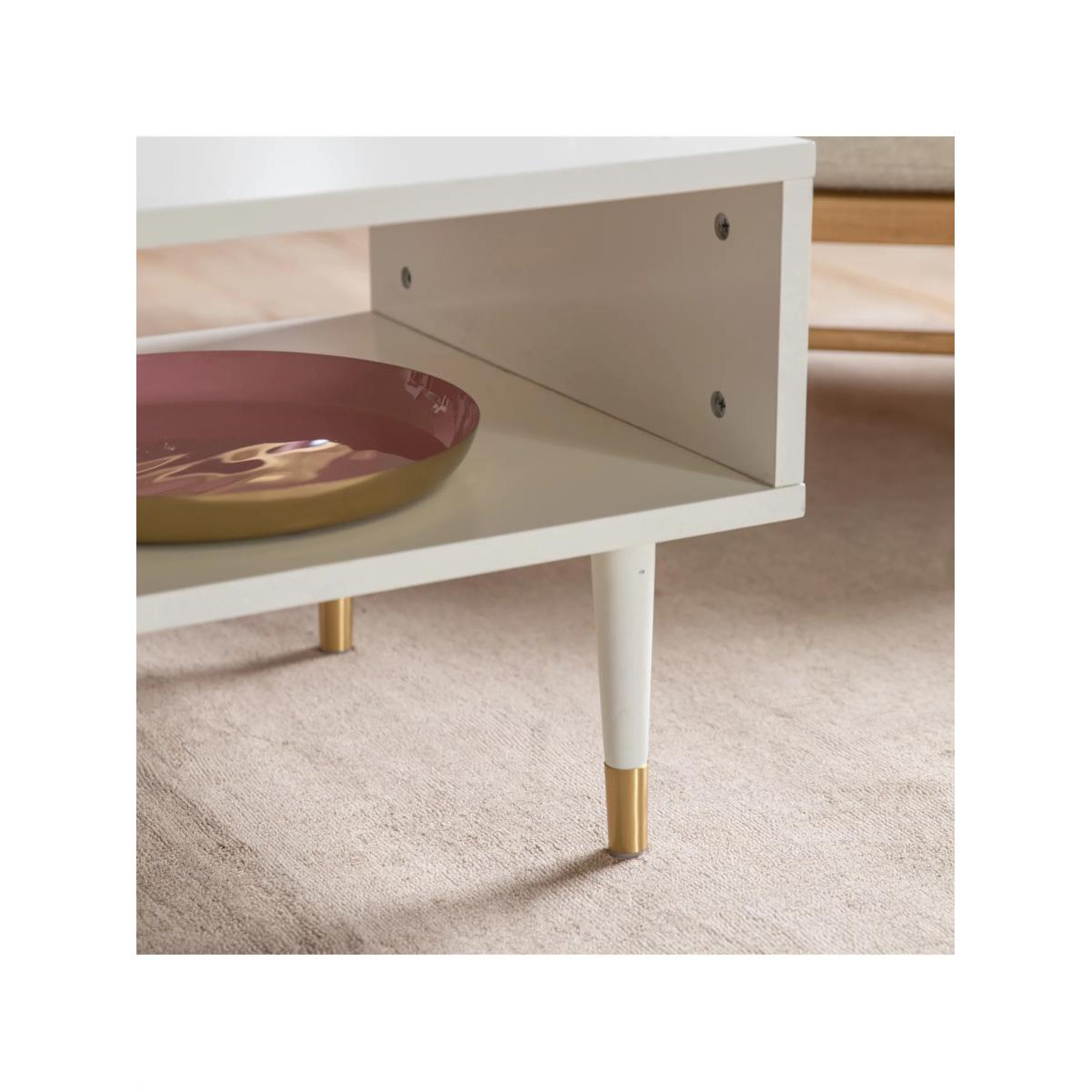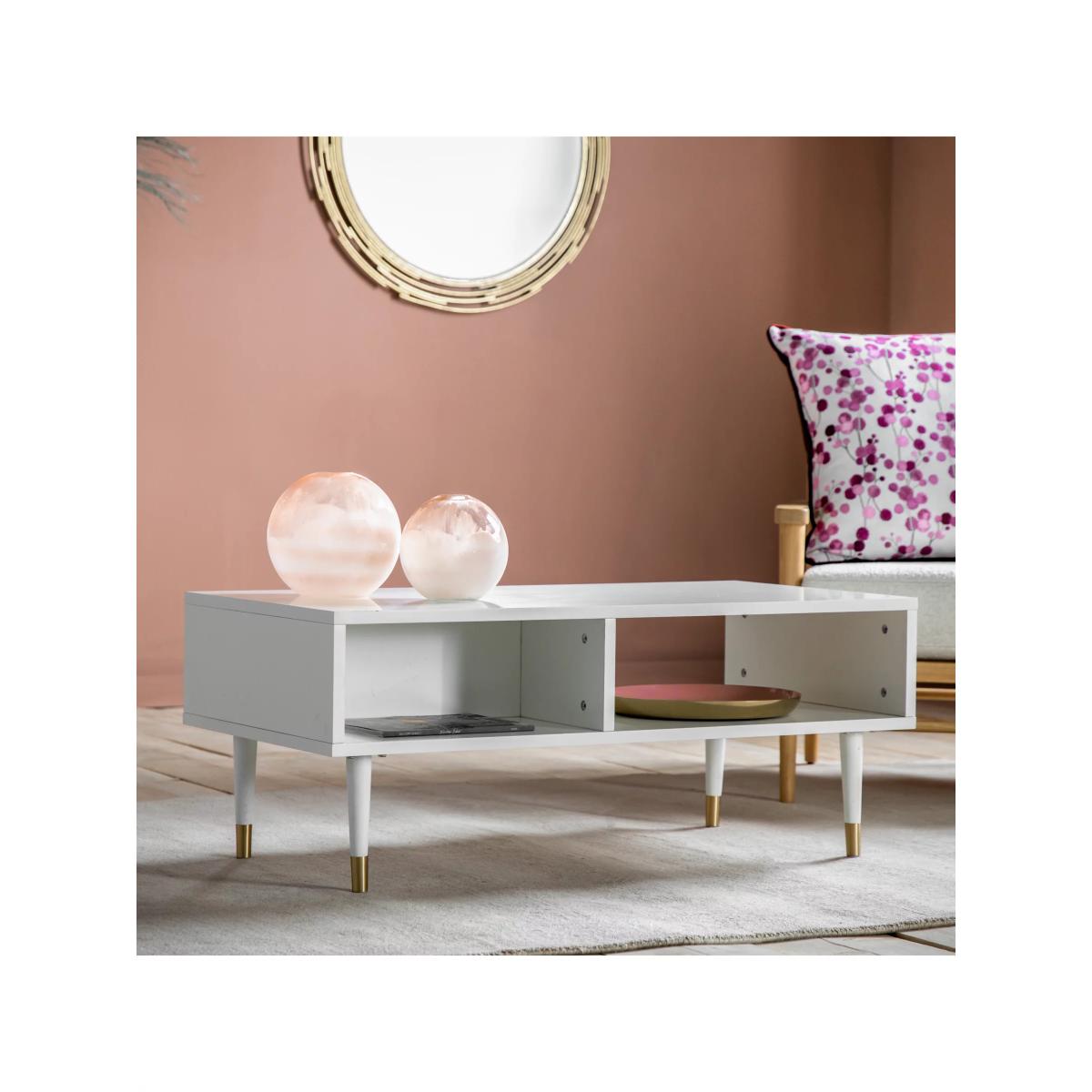 Functional furniture for busy homes. This modern coffee table incorporates two storage areas, with one section designed with a back panel and the other section designed with a contrasting open back. Less clutter, calmer space. It's made from sturdy timber in a selection of painted finishes and it's accented with brass-effect detail. Supplied flat-packed, but assembly is straightforward and all the tools you'll need are included. Want to see it first? You may want to see and get a feel for the furniture in one of our shops before ordering. We'll be able to tell you where the range you'd like to view is on display.