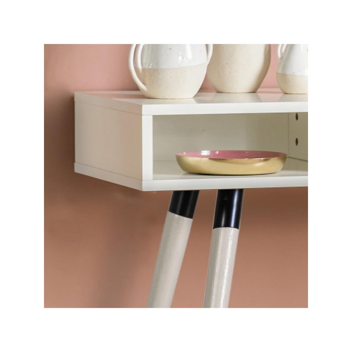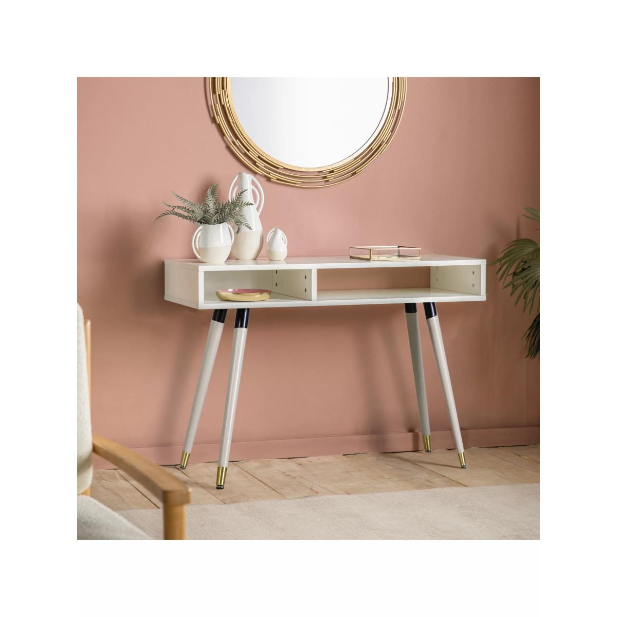 Doubling up as a desk, this console table incorporates storage with both a closed and open section. It's made from sturdy timber in a selection of painted finishes and it's accented with brass-effect detail. Supplied flat-packed, but assembly is straightforward and all the tools you'll need are included. Want to see it first? You may want to see and get a feel for the furniture in one of our shops before ordering. We'll be able to tell you where the range you'd like to view is on display.