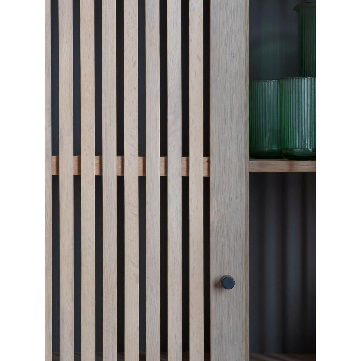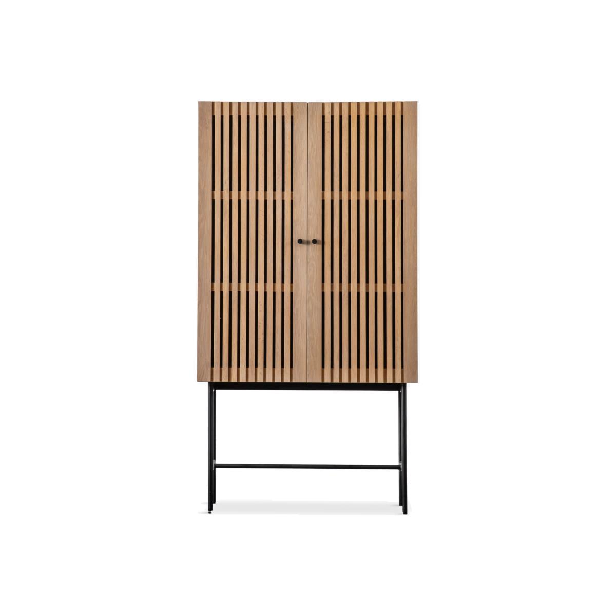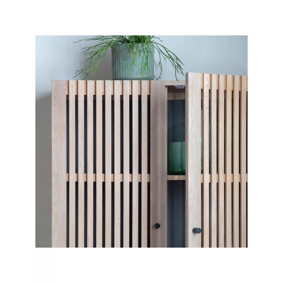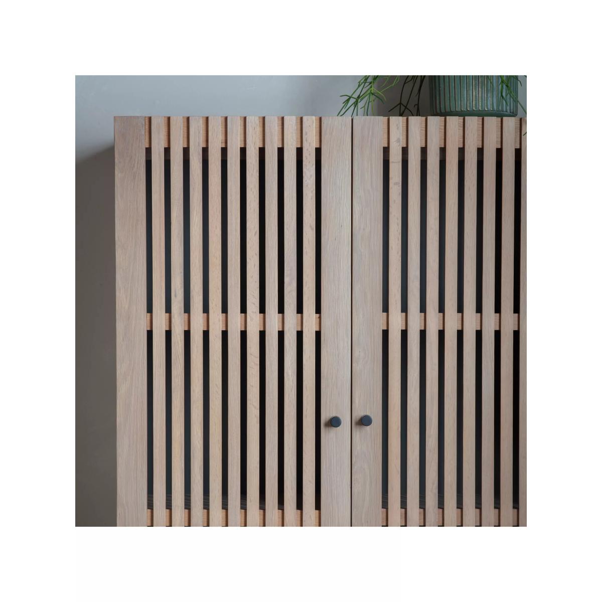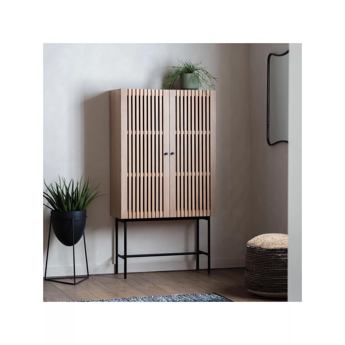 This storage cabinet celebrates the calming fusion of Japanese and Scandi style, shown through its use of natural materials and minimalist design. Perfect for creating a considered yet contemporary look in your living room, it's made from solid oak with slatted doors and slim metal legs in a contrast black finish. Inside, you'll find shelving that makes it easy to organise all your bits and bobs. Want to see it first? You may want to see and get a feel for the furniture in one of our shops before ordering. We'll be able to tell you where the range you'd like to view is on display.