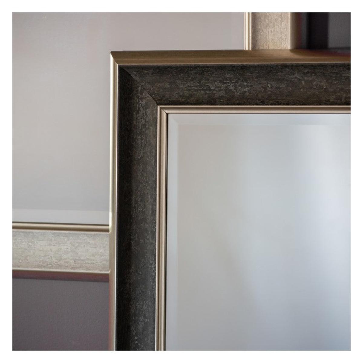 The Freeman is a versatile modern-styled mirror that will work with almost any home décor style. The frame is neither ornate nor plain, rather it is an elegant curve with a mottling effect in bla. View More. The Freeman is a versatile modern-styled mirror that will work with almost any home décor style. The frame is neither ornate nor plain, rather it is an elegant curve with a mottling effect in black and Champagne silver, rimmed with a minimal but elegant fluting. Similar mirrors are also available in other sizes and/or with an antiqued white frame. This one is 105. 5cm by 75cm - the perfect size for most wall mirrors or for use as a dressing table mirror. You can also deploy these mirrors to illuminate dark corners or to open up a confined area with the illusion of extra space.