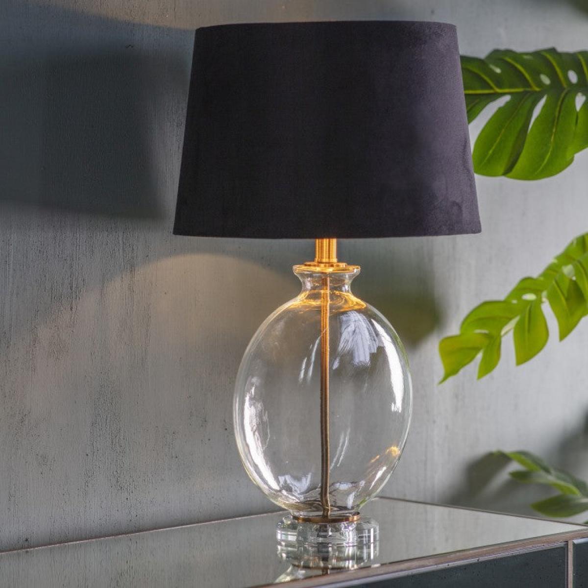 A gorgeous and contemporary lamp that is sure to attract some attention in your home, the Gideon Table Lamp would make a fantastic addition to any home. The highlight of this lamp is the clear glass stand that adds a modern vibe to the piece, contrasting beautifully with the soft, black lampshade. The Gideon Table Lamp is also well-sized for a wide variety of spaces, measuring at 30. 5cm in width and 60cm in height. *Moot Trading Ltd is not a lender and acts only as an introducer. The credit product is provided by Klarna Bank AB (publ). Credit is only available to permanent UK residents aged 18 and over, subject to status. Terms and conditions apply. Please note that the following products are not regulated by the FCA: Pay in 30 days and Pay in 3 instalments. Read More.