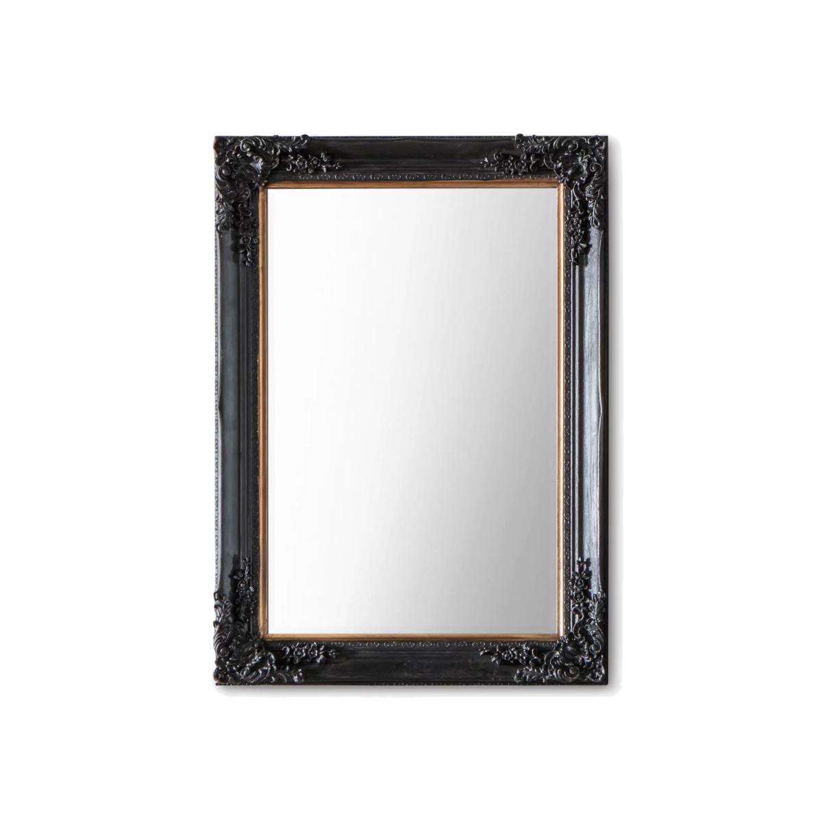 Beautiful Baroque-style rectangular wall mirror with an antique black finish, decorative mouldings and painted gold border. A luxurious addition to your living space. Have you thought about wall hooks and fittings?