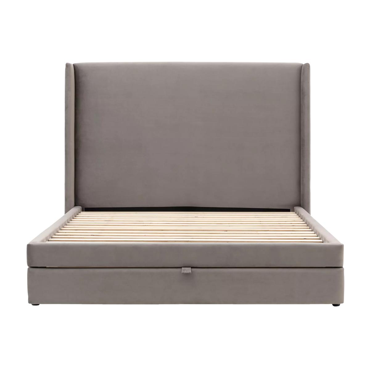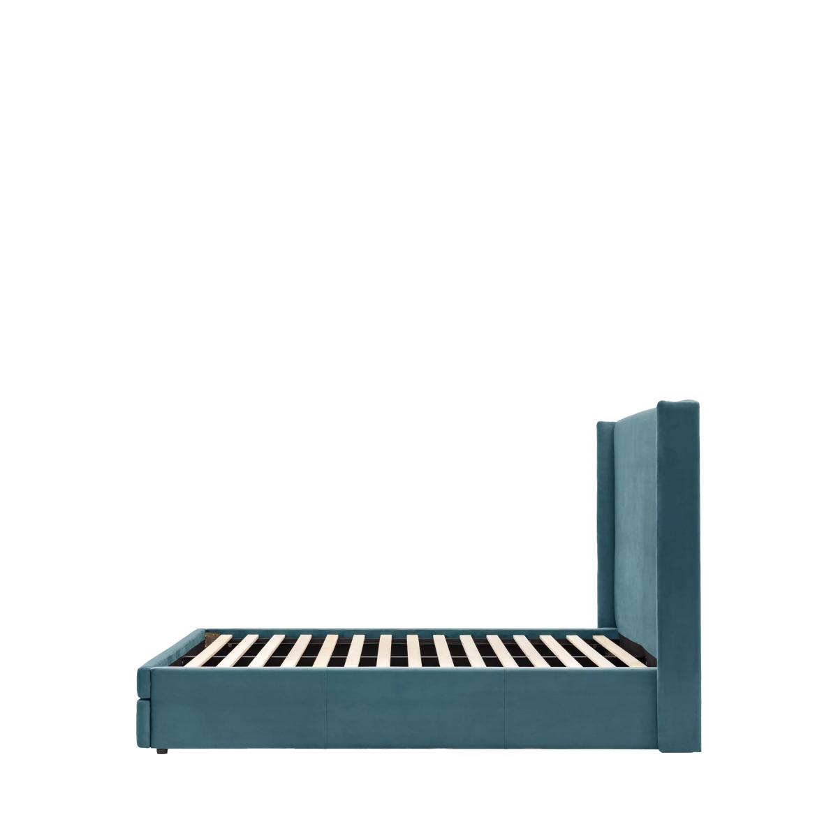 This upholstered bed offers a combination of modern design and practicality. There's a built-in drawer at the foot of the bed which pulls-out to reveal two storage sections, making this frame an ideal choice if you have limited storage space in your bedroom. Plus, its plush, curved headboard wraps around the sides, framing your mattress for a contemporary and enclosed look. Complete with solid slats in the base which provide a supportive foundation for your mattress. See me in-store It's a good idea to get a feel for new furniture before you make a purchase.