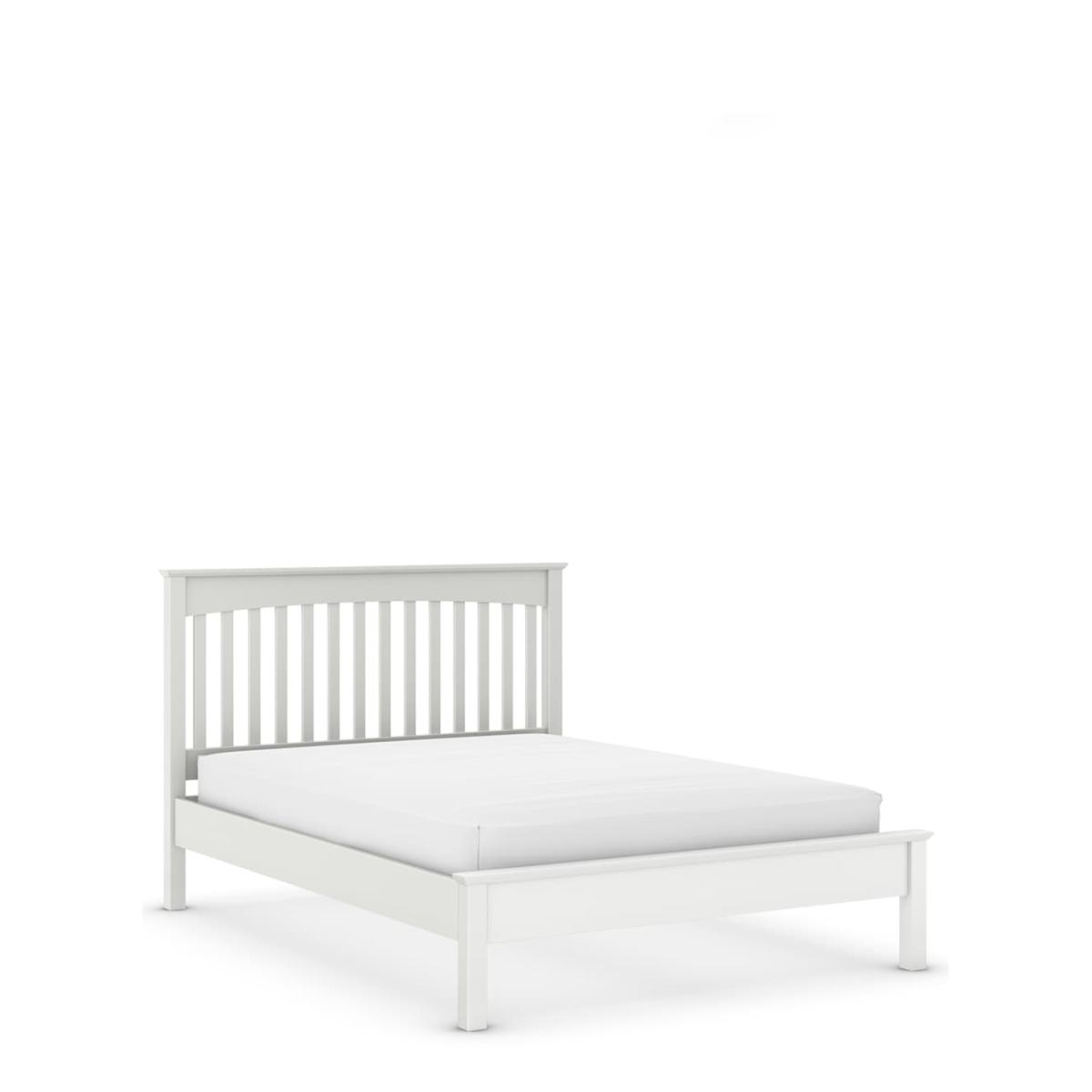 With its simple, elegant design, this bed from the Hastings collection is perfect for any room. Made from pine wood with a painted finish, it's available in a range of colours. The low profile helps create a spacious feeling in the bedroom while still providing some room under the bed. The slatted headboard brings a classic look. Mattress is not included with the bed frame. Includes 1 Year Guarantee