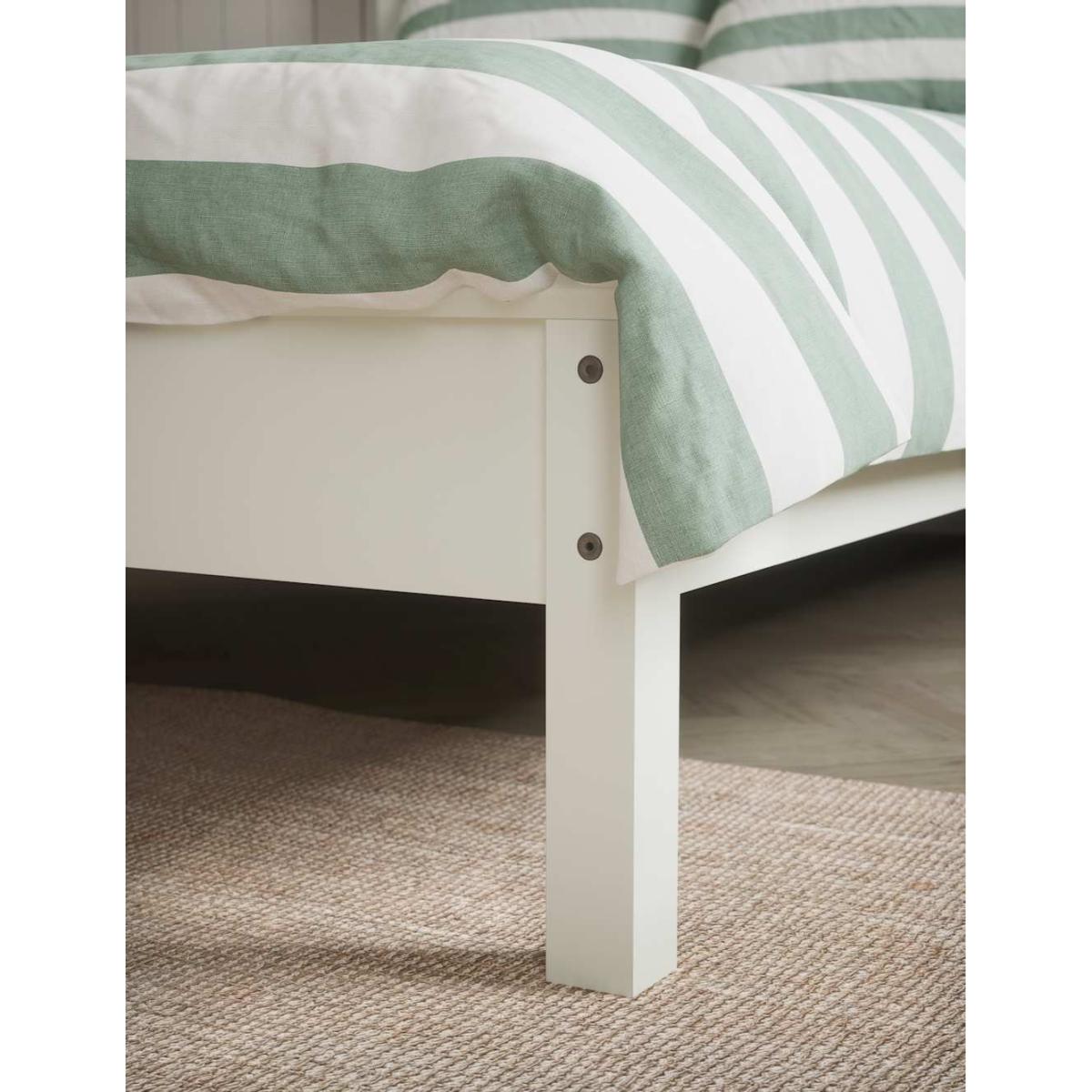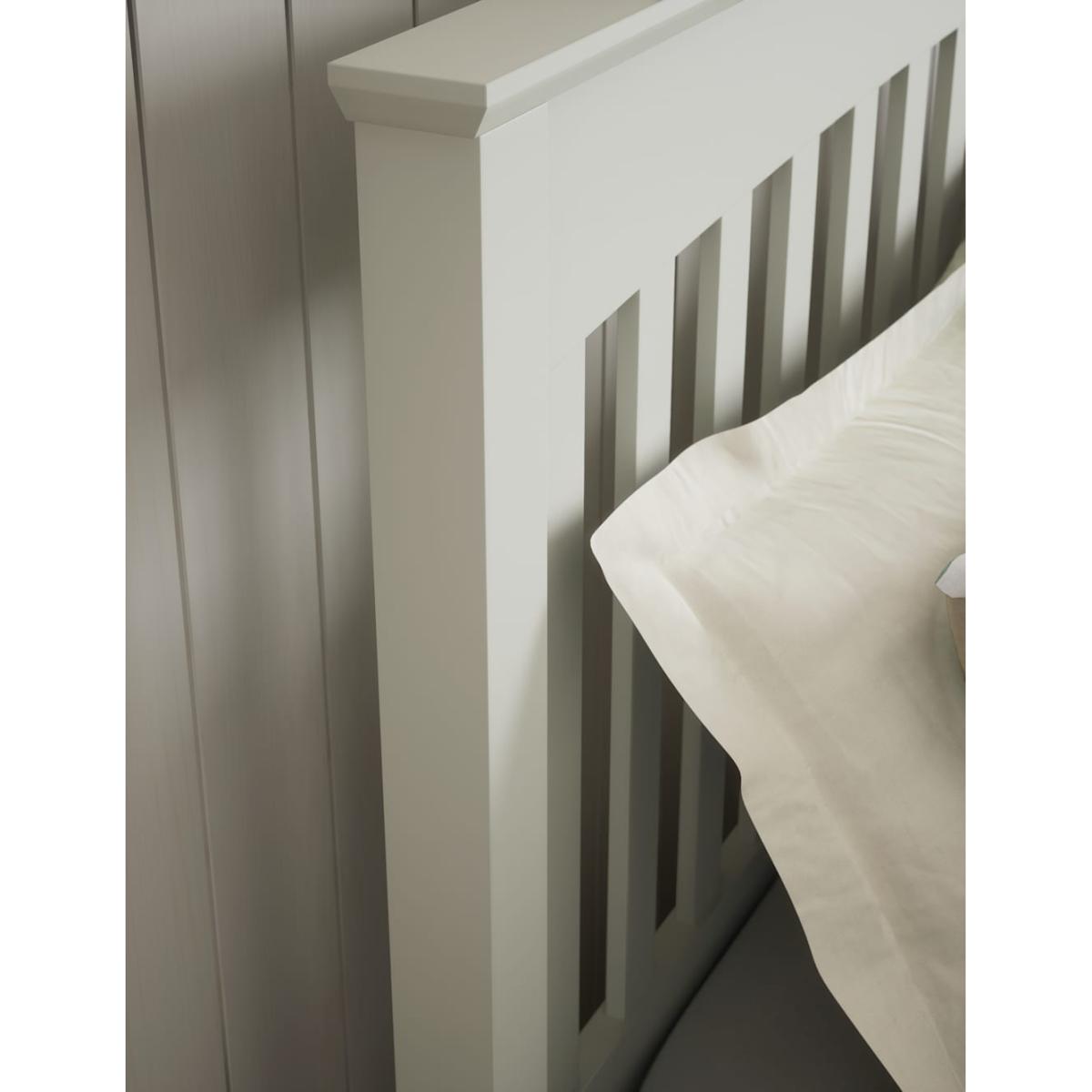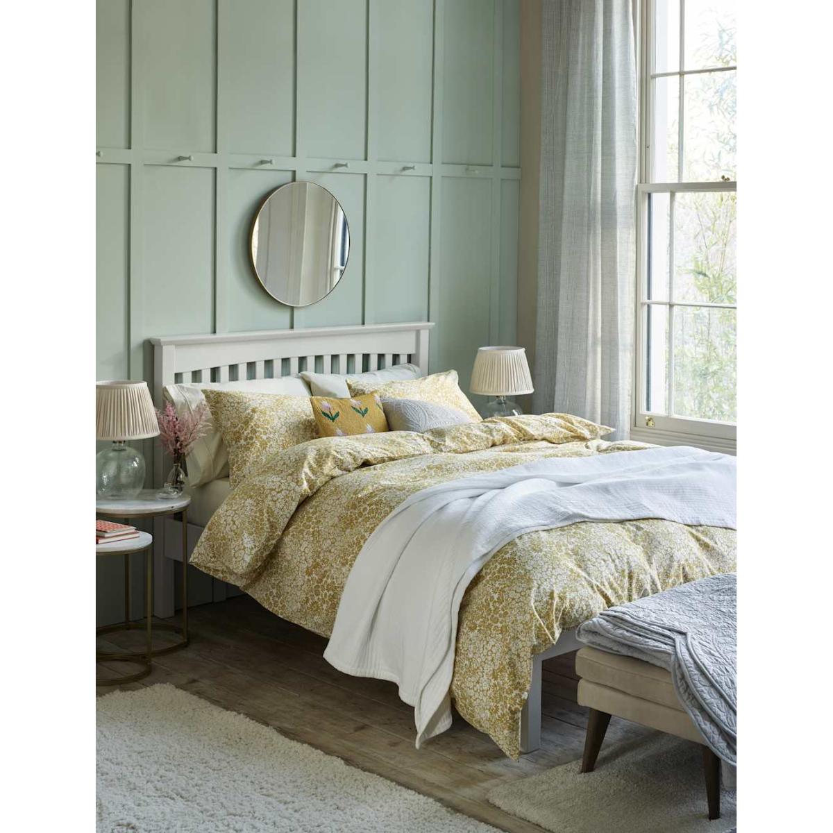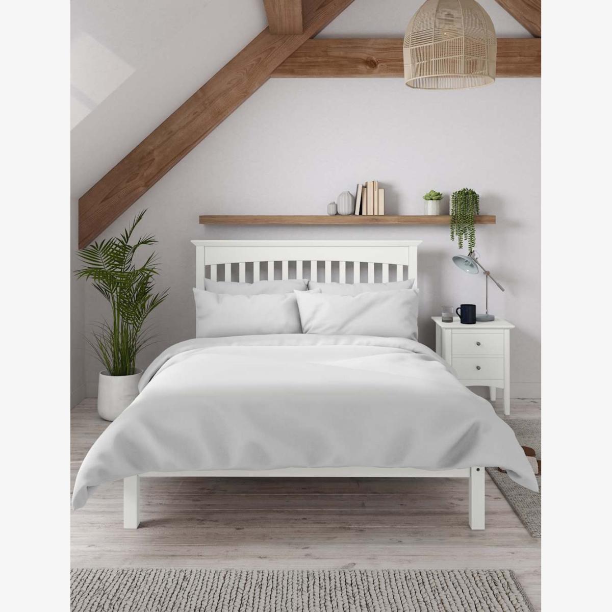 I really like the Hastings bed for its crisp painted finish and clean slatted headboard - it’s a versatile frame that sits equally well in a Scandi-inspired loft or a cosy country cottage. The soft-white tone makes it easy to swap accent colours: go for muted greys and natural woods for a pared-back look, or introduce soft blues and jute textures for a relaxed, coastal feel. For styling, anchor the bed with a neutral rug and layer linen-and-cotton bedding in light hues. Add a chunky knit throw or a couple of patterned cushions for texture. Keep your bedside tables simple - a slim-line lamp and small potted plant will do - and if you need extra display space, a pair of floating shelves above the headboard lets you showcase books or ceramics without crowding the room.