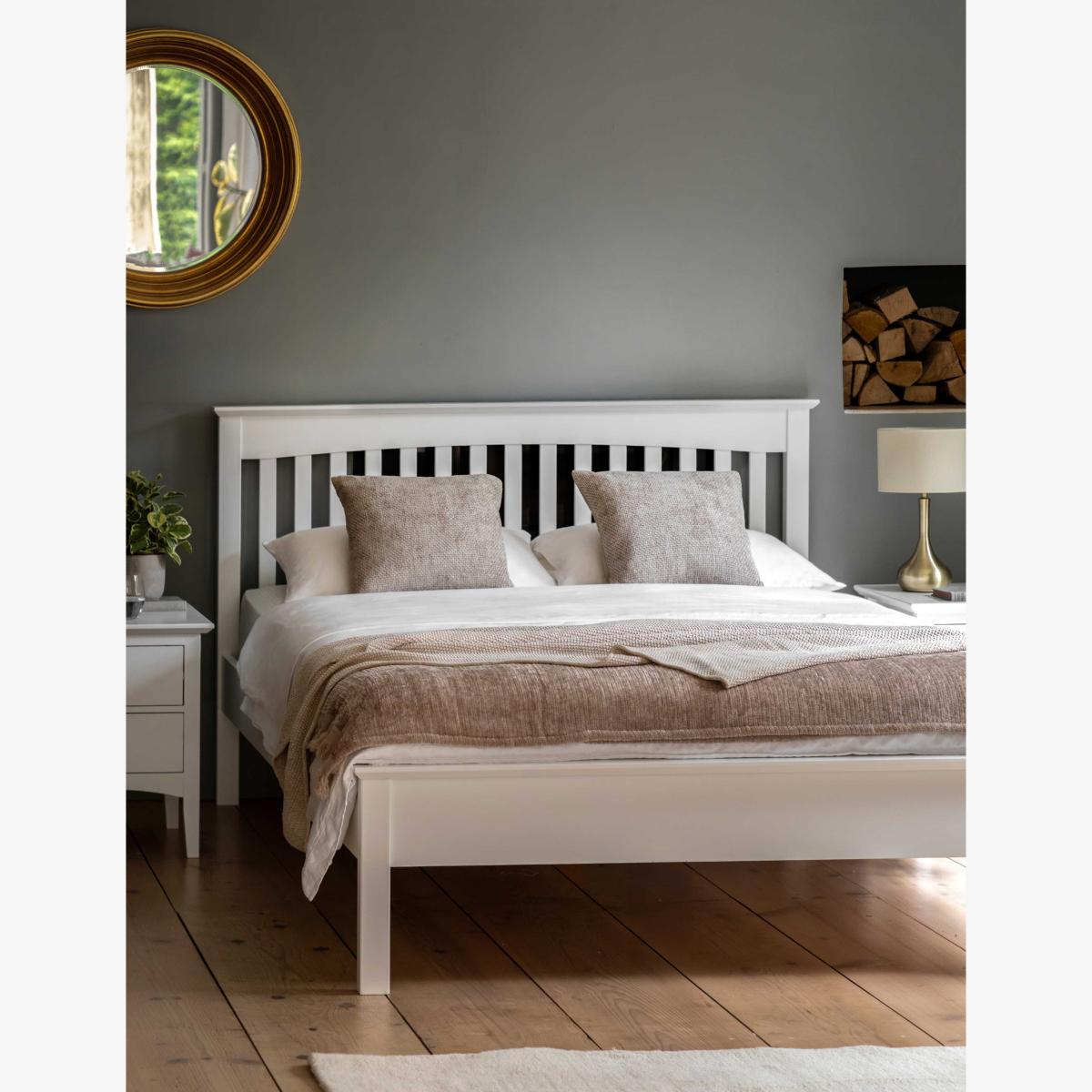 I love the Hastings bed for its clean, understated style that works well in both modern and traditional interiors. Its soft white finish makes it versatile and easy to dress up with textured bedding or layered throws. The slatted design adds visual interest without overwhelming the space. Practically, it’s a great choice for creating a calming, restful bedroom atmosphere. For styling, try pairing it with neutral or pastel linen for a serene look, or add bold cushions and artwork to introduce colour and personality. Its simplicity makes it adaptable across different decor schemes, from minimalist to cosy country chic.