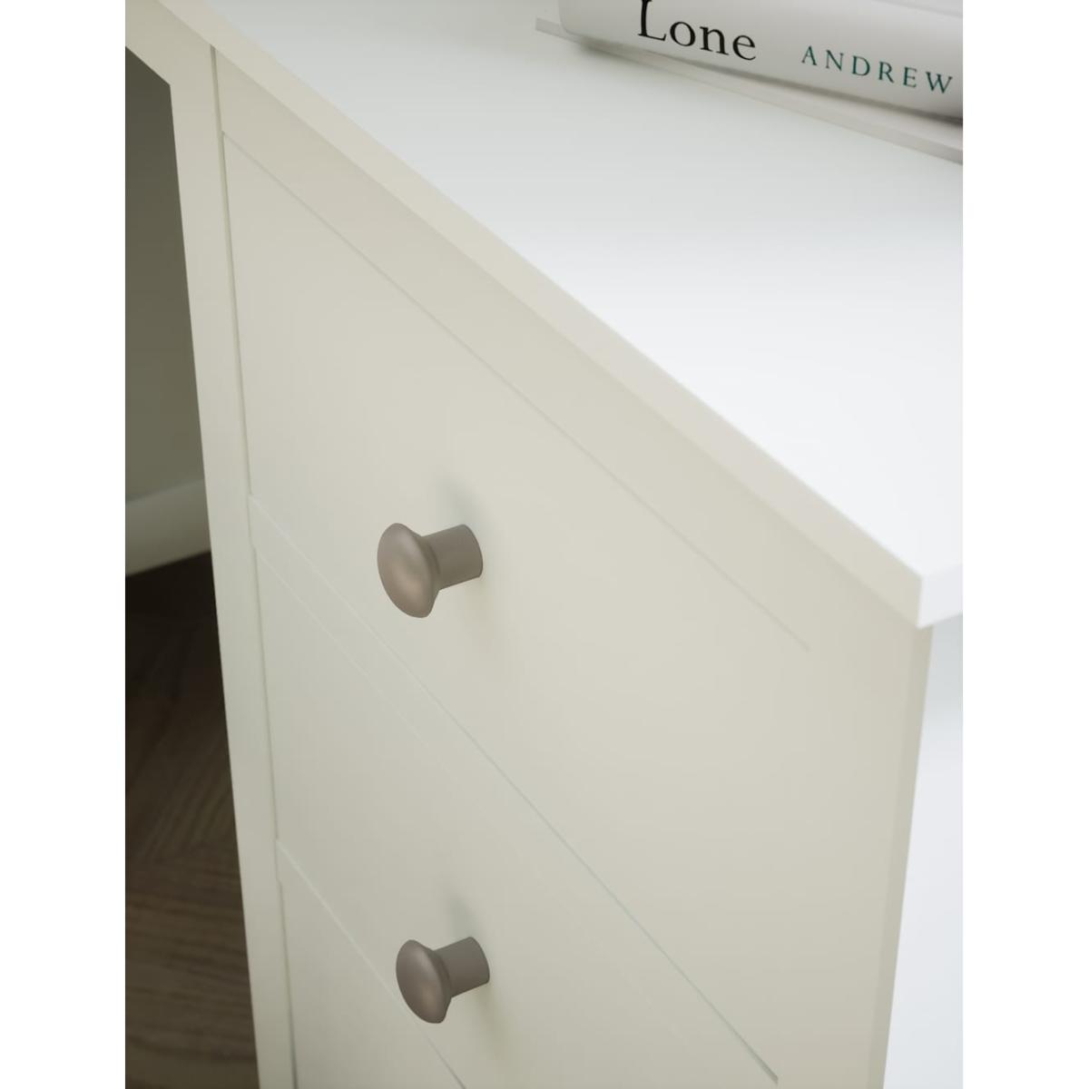 I love this dresser because of its clean, soft white finish which offers a versatile and fresh look that works well in both classic and contemporary interiors. It’s ideal for a bedroom aiming for a bright, airy feel, but can also be styled in a vintage or shabby-chic space with layered accessories and soft textiles. Practically, the multiple drawers provide ample storage, keeping clutter tucked away, while the central space can be utilised for a mirror and accessories. For styling tips, pair it with understated tableware or decorative objects in neutral tones or subtle metallics to keep the look elegant and cohesive. Adding a plush stool or an upholstered seat can elevate the comfort, while a colourful or textured cushion can introduce personality without overwhelming the simplicity of the piece.