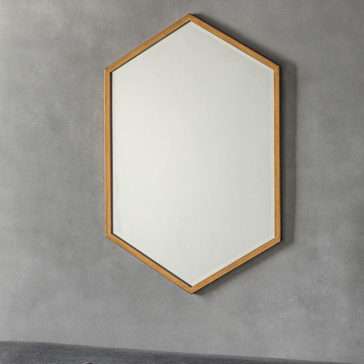 Mirror, mirror, on the wall, this could be the fairest one of all! This beautiful hexagonal Helston mirror by Gallery Direct is perfect to hang over a fireplace or sideboard, or perhaps in an entrance hall. Position it opposite a window, and the light will be reflected around your space. The geometric lines of the metal frame are right on trend, and the antique gold colour makes it a very attractive piece. The mirror is fitted with two hangers on the reverse, ready to hang it vertically as shown. It measures 90cm long by 60cm wide, and reaches 2cm out from the wall. *Moot Trading Ltd is not a lender and acts only as an introducer. The credit product is provided by Klarna Bank AB (publ). Credit is only available to permanent UK residents aged 18 and over, subject to status. Terms and conditions apply. Please note that the following products are not regulated by the FCA: Pay in 30 days and Pay in 3 instalments. Read More.