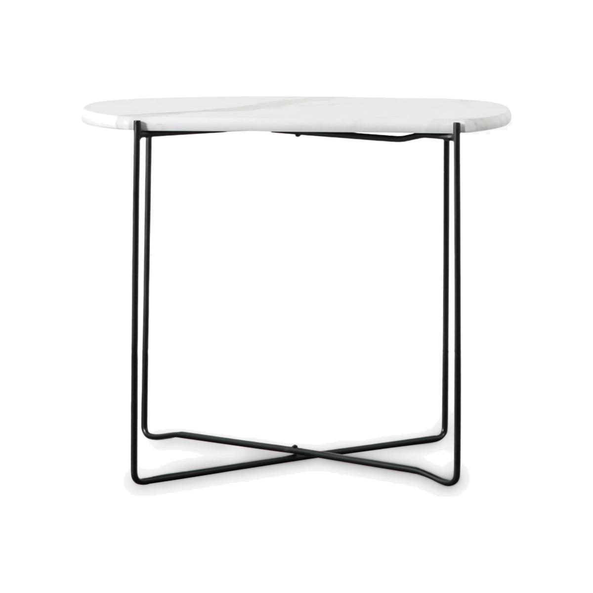 Designed with a faux marble surface and minimalist metal frame, it's easy to style this side table in your modern home. Not square, not circle, but instead designed with straight sides and gently curved ends for a more distinctive look. It's supplied flat-packed, but assembly is straightforward and all the tools you'll need are provided. Want to see it first? You may want to see and get a feel for the furniture in one of our shops before ordering. We'll be able to tell you where the range you'd like to view is on display.
