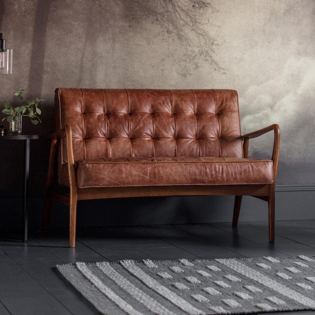 I love the way this sofa brings a touch of vintage charm to modern interiors. Its rich brown leather and tufted detailing create a timeless look that works particularly well in industrial, bohemian, or mid-century styled rooms. It’s versatile enough to pair with both contemporary and eclectic furnishings, making it a great statement piece. For styling tips, consider adding textured cushions and a cosy throw to soften the look. Placing it near a warm wooden coffee table or alongside neutral-toned rugs will help ground the space. Plus, its compact size makes it ideal for smaller living rooms or domestic spaces where you want to combine style with practicality.