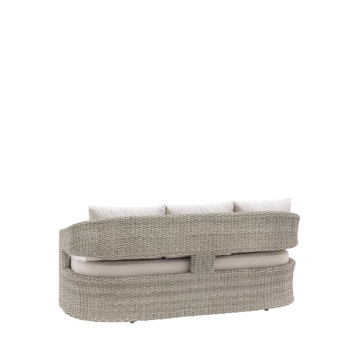 Stylish and comfortable three-seater sofa for relaxing in your garden or on your patio. A captivating blend of modern design and artisanal craftsmanship, the woven rattan frame provides a durable and weather-resistant structure, while the plump seat and backrest cushions offer luxurious seating. The bold, geometric shape adds a touch of contemporary flair. Key features: 3-seater garden sofa Durable and weather-resistant woven outdoor rattan Robust steel frame Plush shower-resistant seat and backrest cushions
