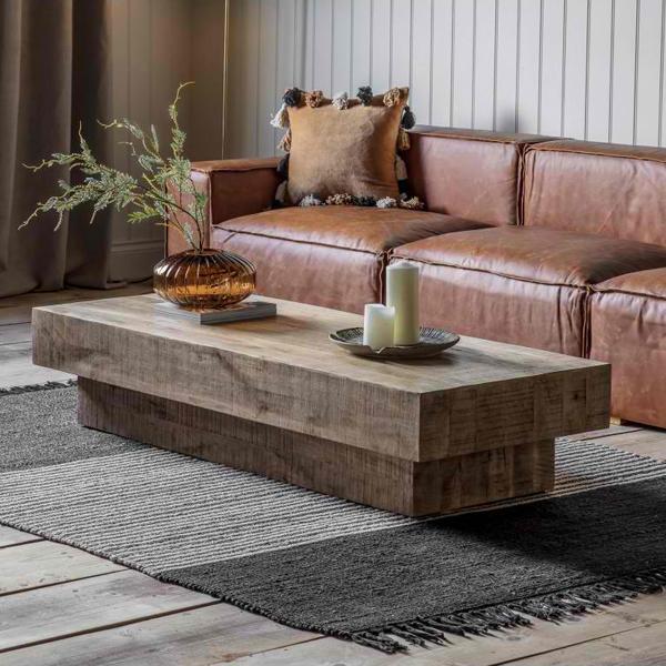 I love this table for its clean, understated look that adds warmth and texture to a variety of interiors. It works particularly well in contemporary and rustic schemes, thanks to its natural wood finish. Styling tips include layering different sizes of coffee table books, incorporating a tray for organisation, or adding a small vase with fresh greenery to bring the surface to life. Its substantial presence makes it ideal for open-plan living spaces where it can anchor the seating area, but it’s versatile enough to work in cosy corners as well. Keep accessories minimal for a modern aesthetic or personalise with eclectic pieces for a more lived-in vibe.