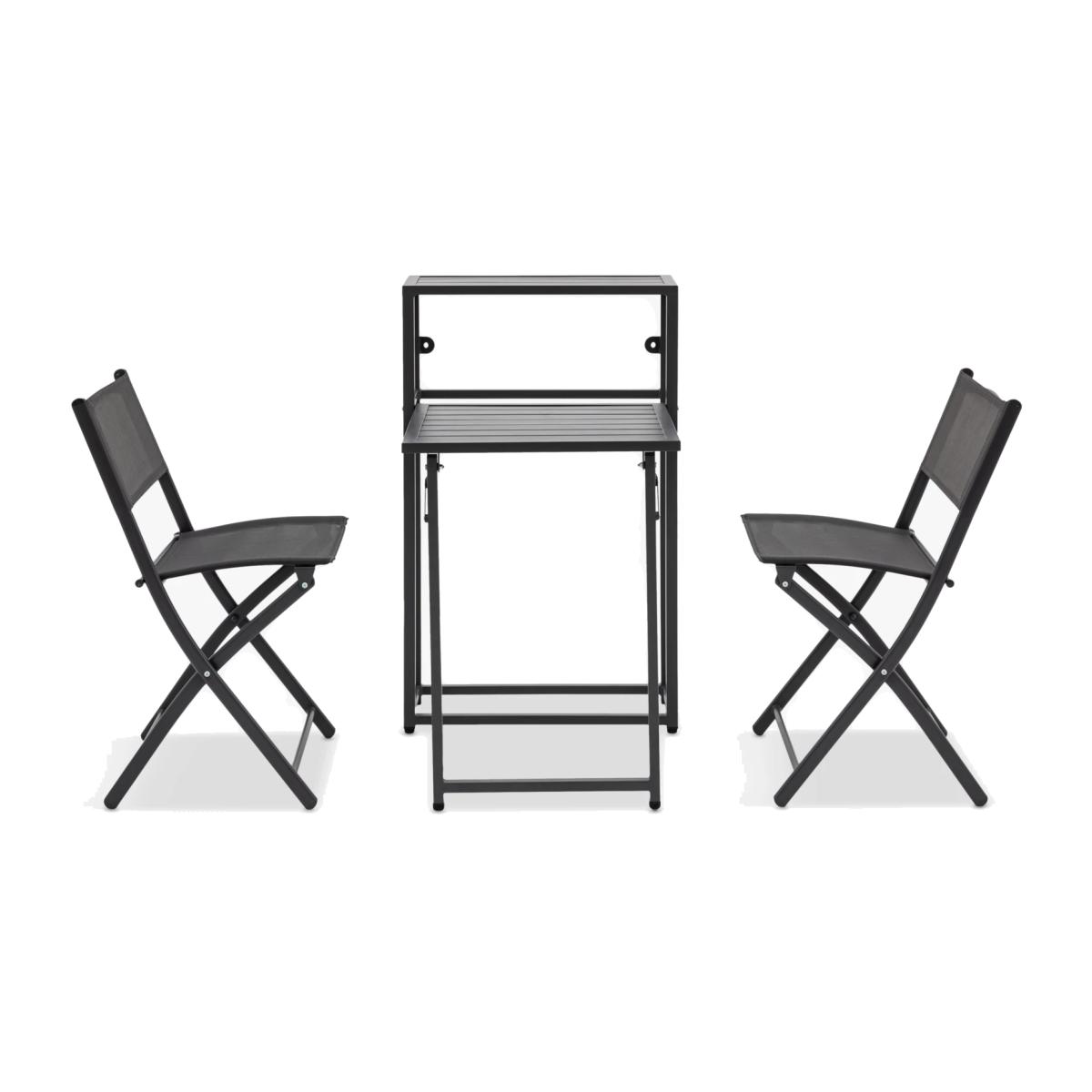 Gallery Direct Kavala Folding 2-Seater Garden/Balcony Bistro Table & Chairs Set, Dark Grey