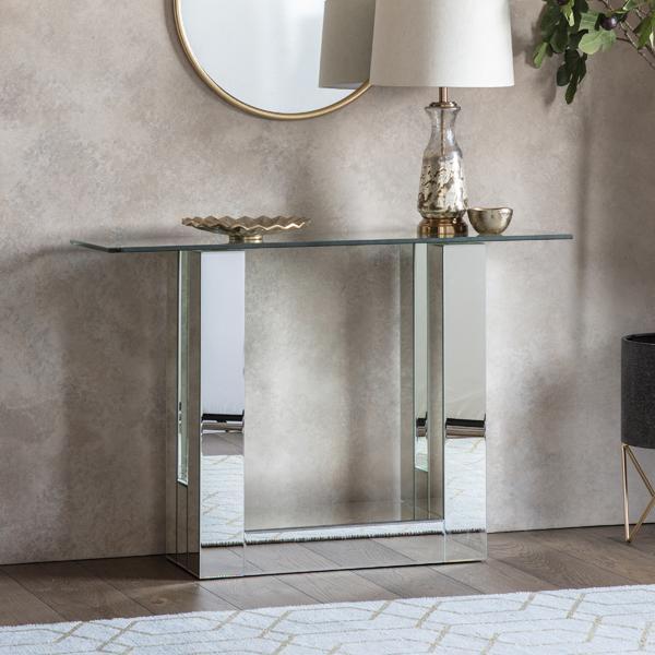 This lovely Kembridge console table from Gallery direct is a wonderful addition to any hallway or living space. It features a silver metal base and stand which give it a solid appearance accompanied by a glass table top which sets the piece off marvellously. This beautiful table also features a bottom shelf, so it is perfect for storing important documents or post. The top itself can be used to house your outdoor essentials such as your wallet or keys. Place a table lamp on it to give your hallway a welcoming glow and give the perfect finishing touch to your space. *Moot Trading Ltd is not a lender and acts only as an introducer. The credit product is provided by Klarna Bank AB (publ). Credit is only available to permanent UK residents aged 18 and over, subject to status. Terms and conditions apply. Please note that the following products are not regulated by the FCA: Pay in 30 days and Pay in 3 instalments. Read More.
