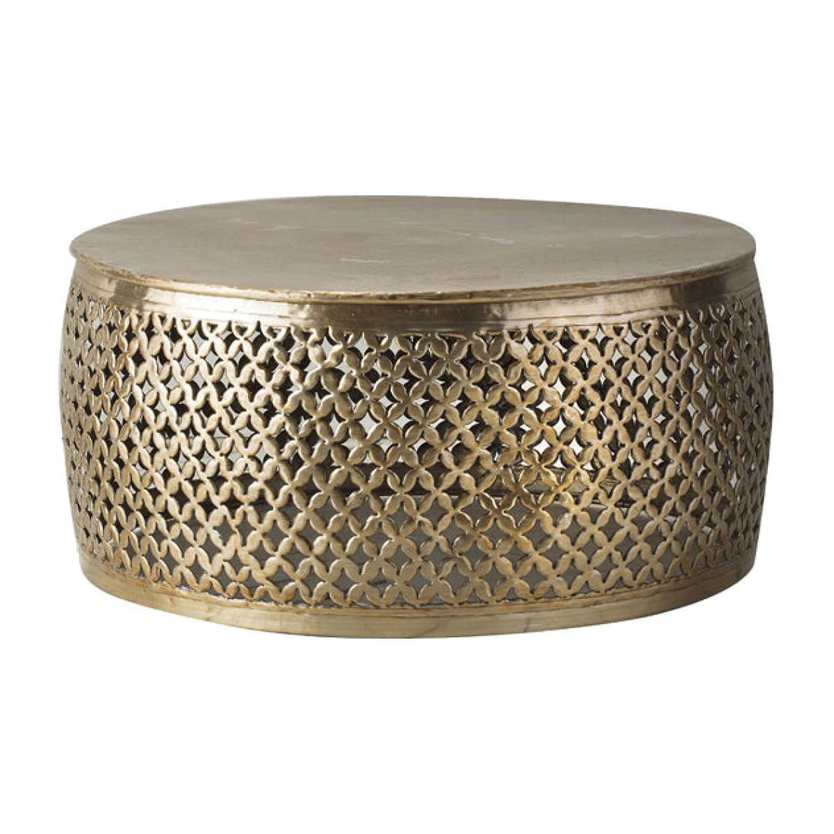 This Khalasar coffee table evokes the sights and sounds of the souk in Marrakech with its detailed fretwork design and golden tones. The sides slope gently out and back again, giving the shape a soft fullness that shows off the detail of the punched metal fretwork and is attractively capped with a band of solid golden colour at the top and bottom. The polished top is lightly hammered to a planished finish, adding texture and making light dance on its surface. This coffee table would make a striking centrepiece for your lounge, positioned on a pastel shade rug or against a dark wood polished floor. *Moot Trading Ltd is not a lender and acts only as an introducer. The credit product is provided by Klarna Bank AB (publ). Credit is only available to permanent UK residents aged 18 and over, subject to status. Terms and conditions apply. Please note that the following products are not regulated by the FCA: Pay in 30 days and Pay in 3 instalments. Read More.
