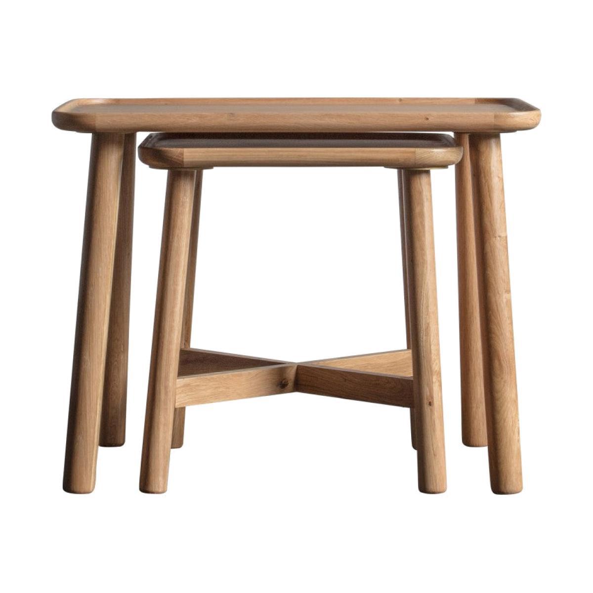 Infuse more function into your living space by adding the stylish Gallery Direct Kingham nest of tables. With two tables in the nest, the light oak finish of these pieces brings subtle elegance to your living room; what’s more, there are two colour choices available. Featuring slim legs for a functional design, the edges of the table are lipped so that anything placed on them won’t roll off. Each table is truly a showcase of expert craftsmanship, so you definitely won’t be let down by the contemporary and sleek look that the Kingham nest of tables will add to your home’s décor. *Moot Trading Ltd is not a lender and acts only as an introducer. The credit product is provided by Klarna Bank AB (publ). Credit is only available to permanent UK residents aged 18 and over, subject to status. Terms and conditions apply. Please note that the following products are not regulated by the FCA: Pay in 30 days and Pay in 3 instalments. Read More.