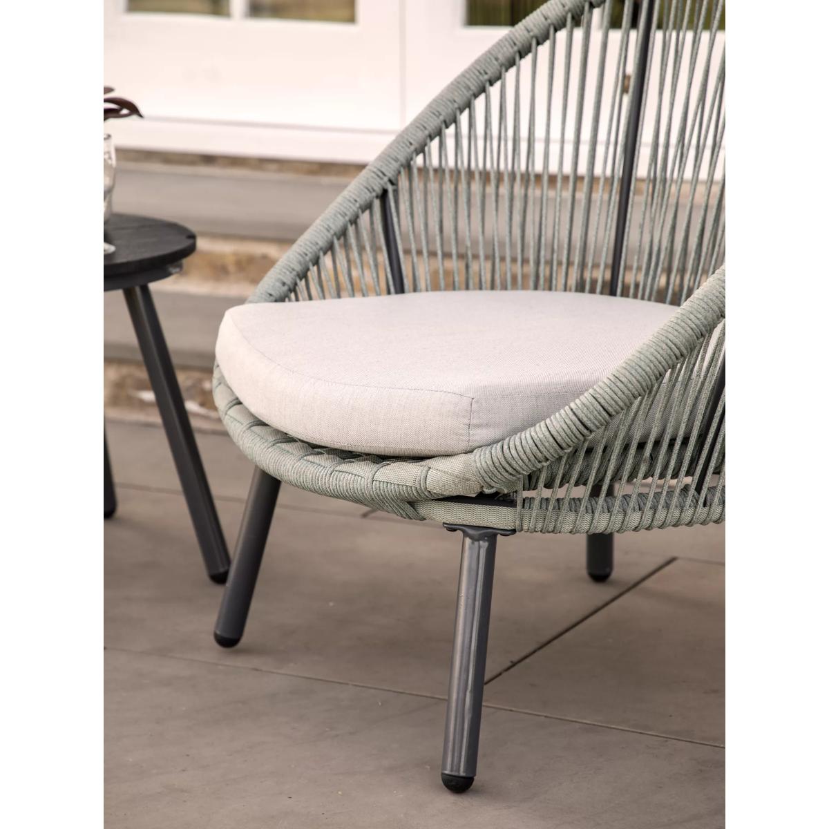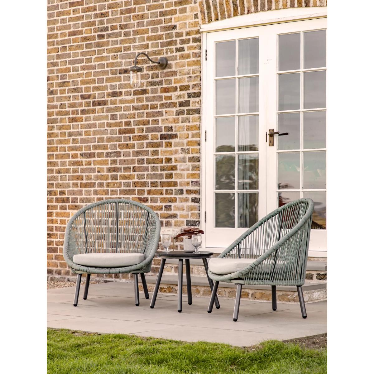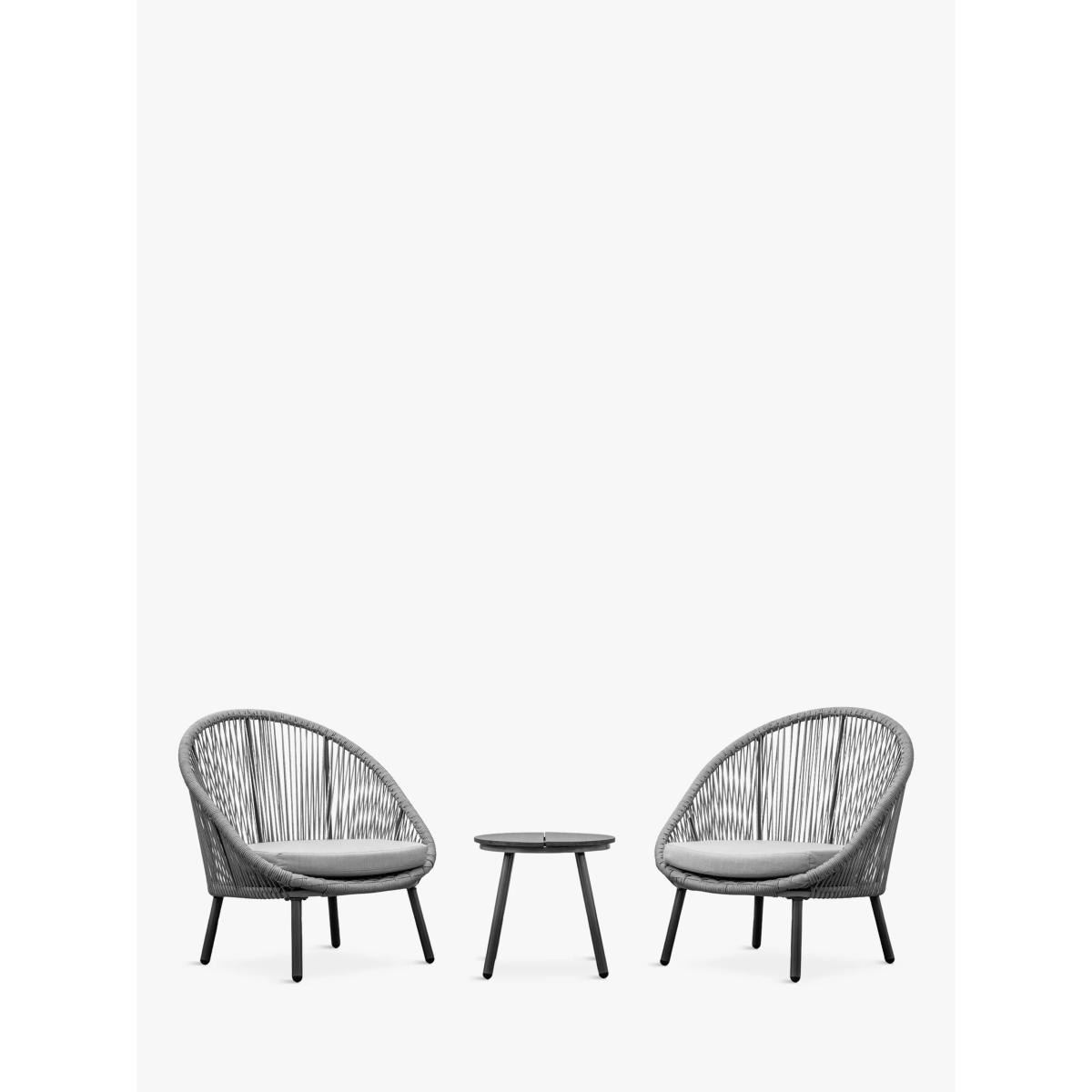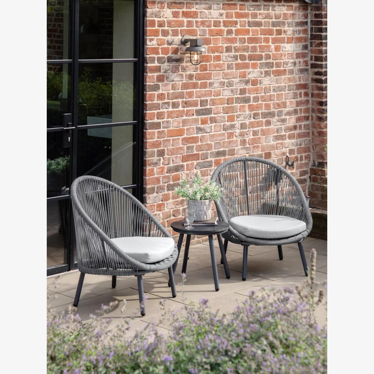 Ideal for a morning coffee, afternoon tea or sundowner outside, this Laira bistro set from Gallery Direct features two comfy low chairs for relaxing in, and a small side table. The chair frames and table are crafted from robust, weather-resistant powder-coated aluminium. The rounded chairs feature a contemporary weave design in weatherproof rope, along with showerproof seat cushions for comfort.