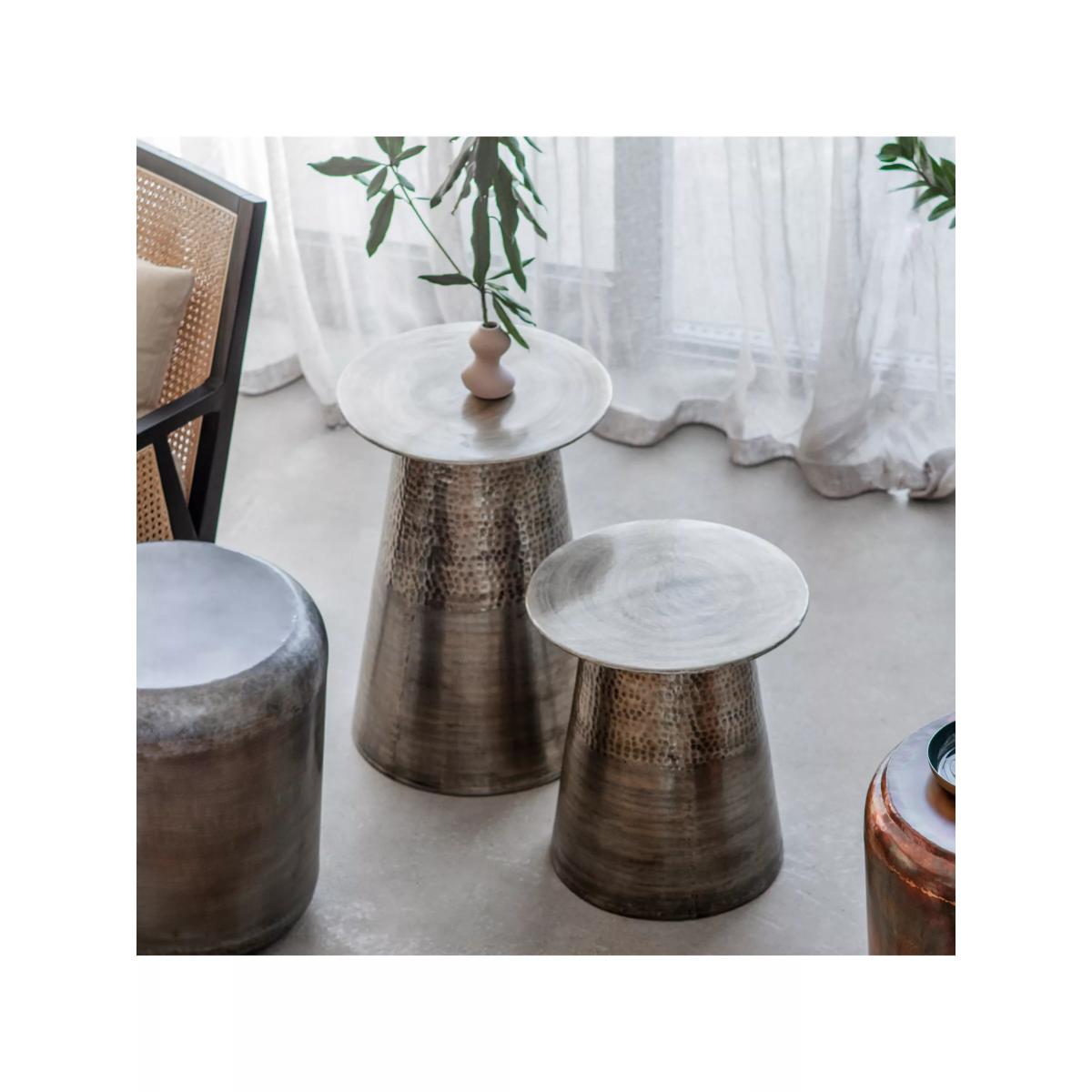 A set of two side tables that will add texture and style to your space. Made from metal in a rustic finish with hammered detail, style them together or separately around your room. Perfectly sized to place next to your sofa or accent chair. Want to see it first? You may want to see and get a feel for the furniture in one of our shops before ordering. We'll be able to tell you where the range you'd like to view is on display.