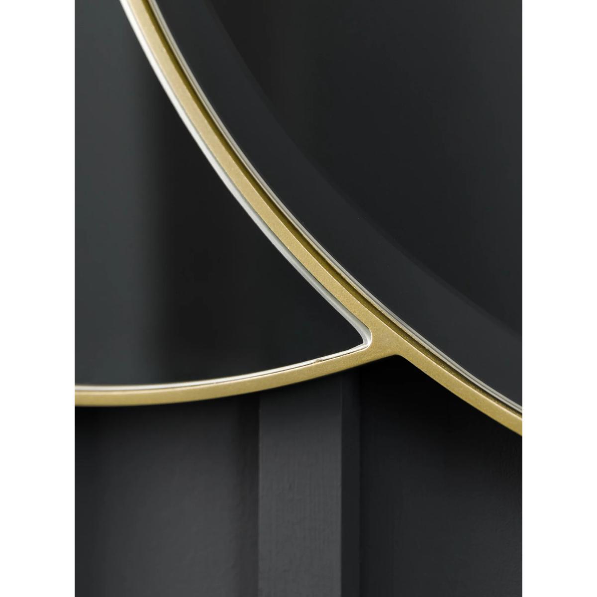 Contemporary wall mirror with interlocking circular shapes, a decorative piece of art in itself. Add some visual intrigue to your wall with this mirror and its chic champagne frame. Have you thought about wall hooks and fittings?