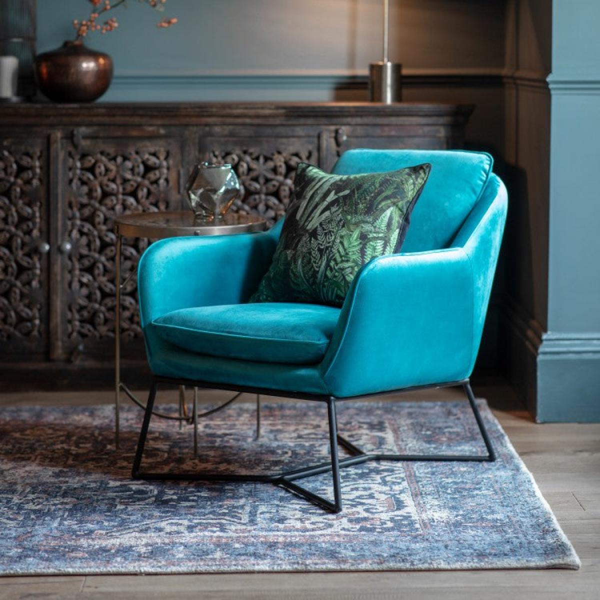 Luxurious and elegant, the Lucca teal velvet armchair from Gallery Direct is a great option for any home. This armchair simply oozes sophistication, with its comforting aura inviting you to sit in it. This welcome is emphasised by its plush velvet cushions and cosy armrests. The bright and vibrant teal of the chair contrasts well with the black chair legs, which cross over in a highly contemporary manner. Measuring 76cm in width, 83cm in depth and 82cm in height, the Lucca teal velvet armchair could easily make itself at home no matter what space limitations you have in your home. *Moot Trading Ltd is not a lender and acts only as an introducer. The credit product is provided by Klarna Bank AB (publ). Credit is only available to permanent UK residents aged 18 and over, subject to status. Terms and conditions apply. Please note that the following products are not regulated by the FCA: Pay in 30 days and Pay in 3 instalments. Read More.