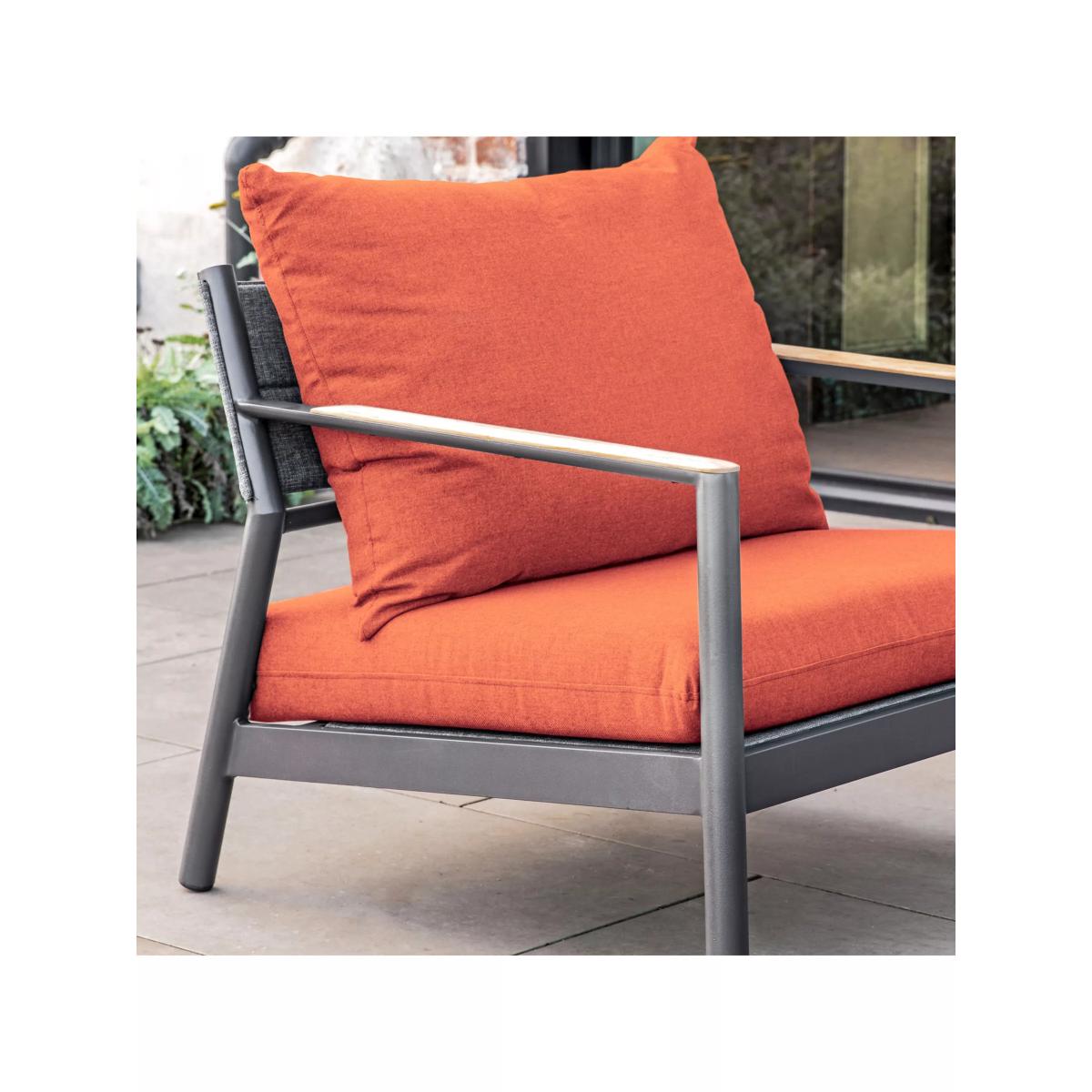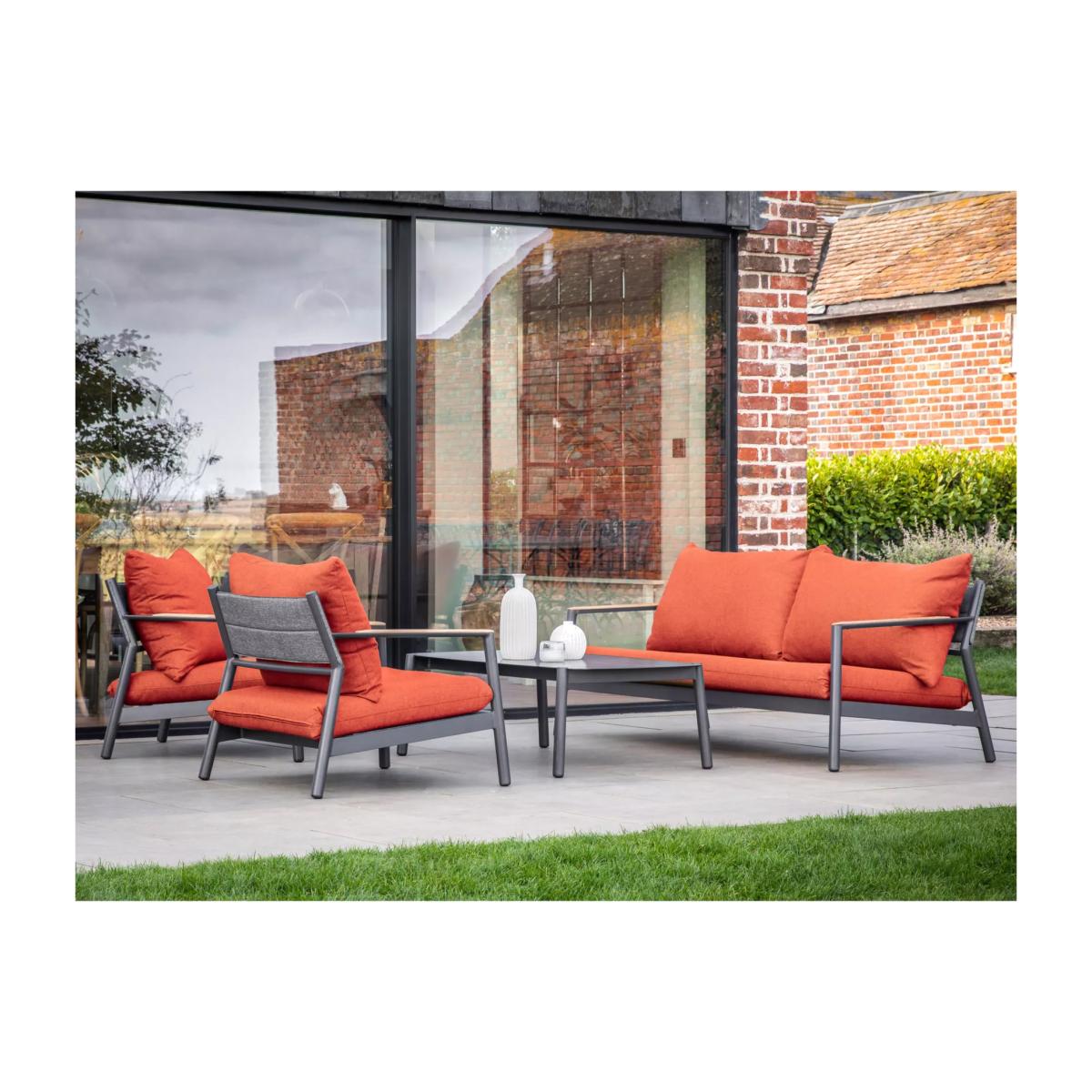 The garden lounge set is a stylish addition that works well in both contemporary and classic outdoor spaces. I love how its sleek grey frames complement the vibrant orange cushions, creating a lively yet sophisticated look. It’s perfect for creating a relaxed outdoor seating area for socialising or unwinding. Practical styling tips include adding neutral-toned outdoor rugs or throws to soften the look, and incorporating some planters or fairy lights for added ambience come evening. This set is versatile enough to fit into garden patios, terrace spaces, or even a conservatory, making it a flexible choice for elevating your outdoor living zone.