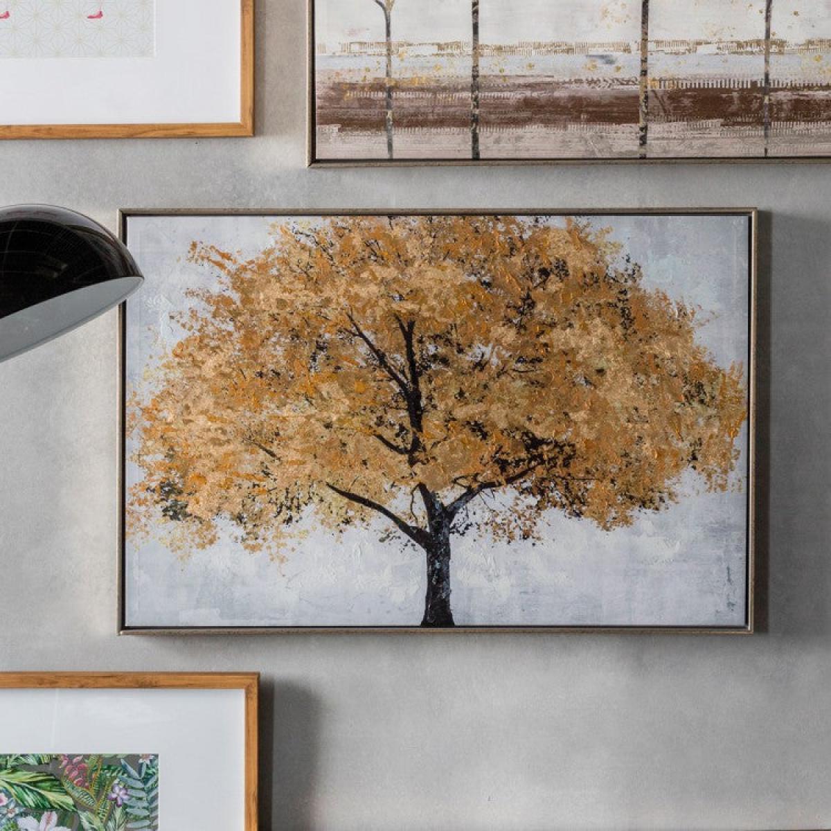 Bring all the charm of the outside into your home with the Midas Tree framed art work from Gallery Direct. Depicting a magnificent tree at the heart of the autumn season, the warm orange and beige hues of the leaves contrast charmingly against the cool background, which illustrates an unmistakably autumnal blue-grey sky. Painted details add an element of texture to the printed artwork, and the foil effect outer frame brings an additional hint of radiance and shine. This charismatic artwork has the presence to make an impression when incorporated into a gallery wall and the personality to be positioned alone in a minimal interior. *Moot Trading Ltd is not a lender and acts only as an introducer. The credit product is provided by Klarna Bank AB (publ). Credit is only available to permanent UK residents aged 18 and over, subject to status. Terms and conditions apply. Please note that the following products are not regulated by the FCA: Pay in 30 days and Pay in 3 instalments. Read More.