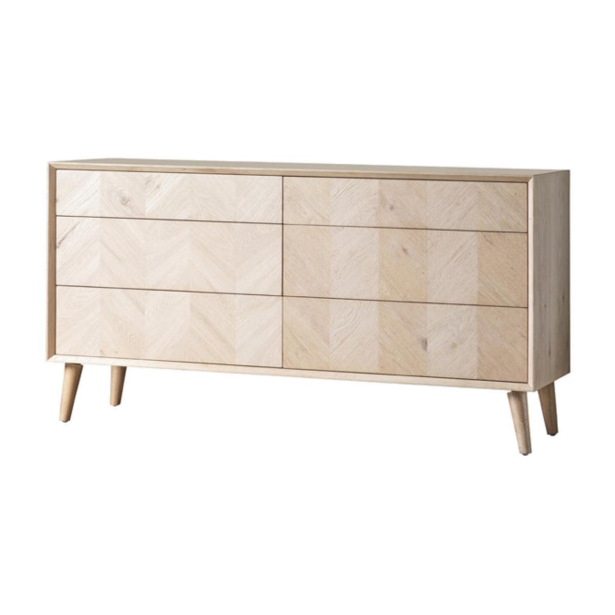 Olivia's Gallery Direct Milano six drawer chest is a gorgeous piece of bedroom or living room furniture that is designed to help you store any clutter, including clothes or home accessories. Its six large drawers have sleek fronts, designed with no handle to create a minimalist appearance. The legs, meanwhile, are also simple in design. What's more, the milky tone of the wood makes this piece just blend beautifully with its surroundings, looking natural, rustic and modern all at once. The perfect boho drawers for your simple scandi-style space or a wonderful standout piece against a rich, dark feature wall. *Moot Trading Ltd is not a lender and acts only as an introducer. The credit product is provided by Klarna Bank AB (publ). Credit is only available to permanent UK residents aged 18 and over, subject to status. Terms and conditions apply. Please note that the following products are not regulated by the FCA: Pay in 30 days and Pay in 3 instalments. Read More.