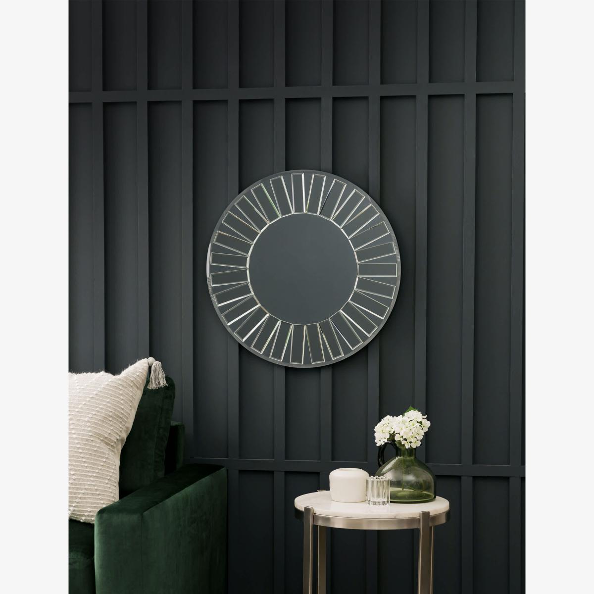 The Mondello wall mirror from Gallery Direct will add instant glamour to any room. This medium-sized round design has a beautiful mosaic-style frame with matching bevelled glass pieces adding extra texture.