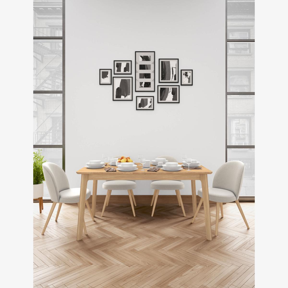 I’m a big fan of the Nord extending table for its clean, Nordic-inspired lines and warm oak finish - it brings a relaxed yet refined feel to both contemporary and Scandi-style interiors. Its easy-glide extension makes it just as at home as a cosy four-seater midweek spot or a roomy gathering table for up to eight. For styling, keep things simple: layer a neutral linen runner down the centre, add a low vase of grasses or a couple of ceramic candleholders, and mix in natural-toned place mats. Pair it with upholstered dining chairs in muted grey or soft green to complement the oak, and leave plenty of breathing space around the table to highlight its sleek legs and solid craftsmanship.