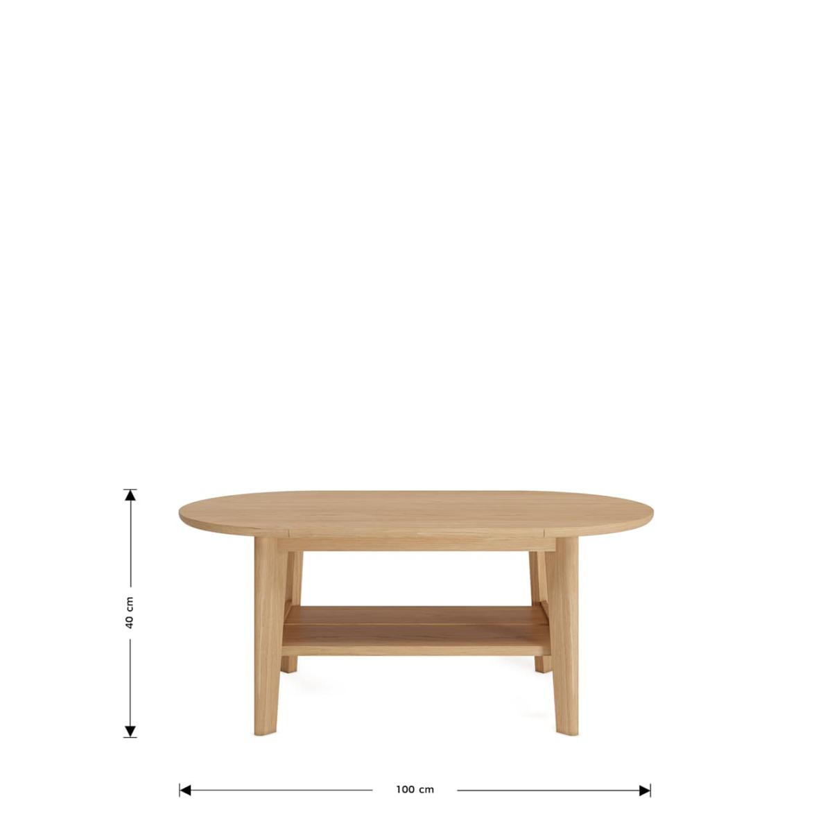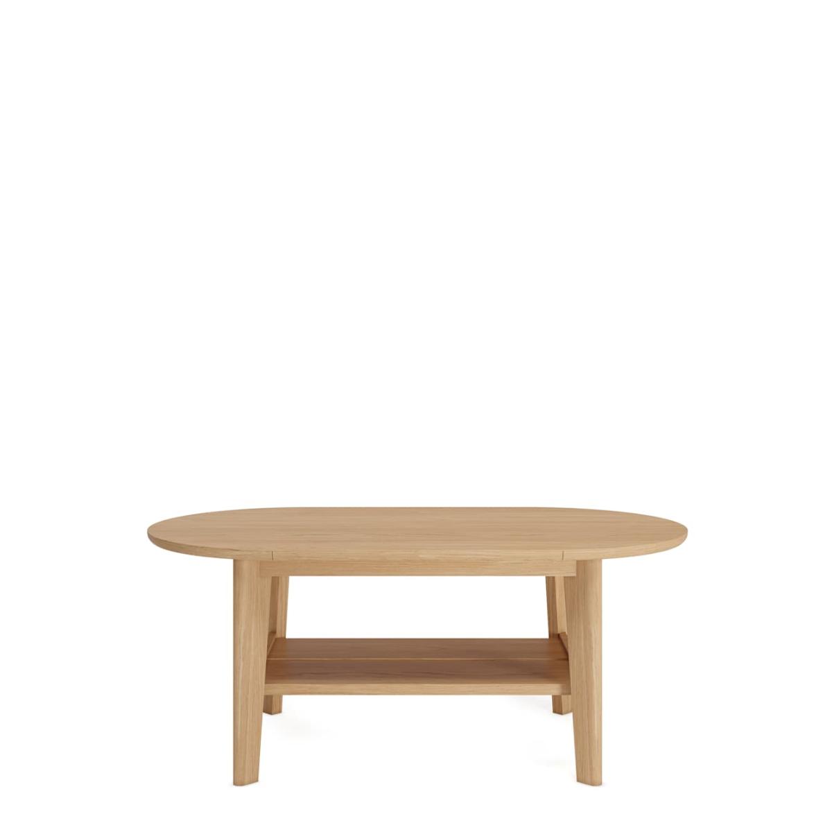This coffee table is built from solid oak and oak veneer, for a modern feel. Its oval top gives an elegant air, and an open shelf below adds useful extra storage. Matching pieces from the Nord range are available. Includes 1 Year Guarantee