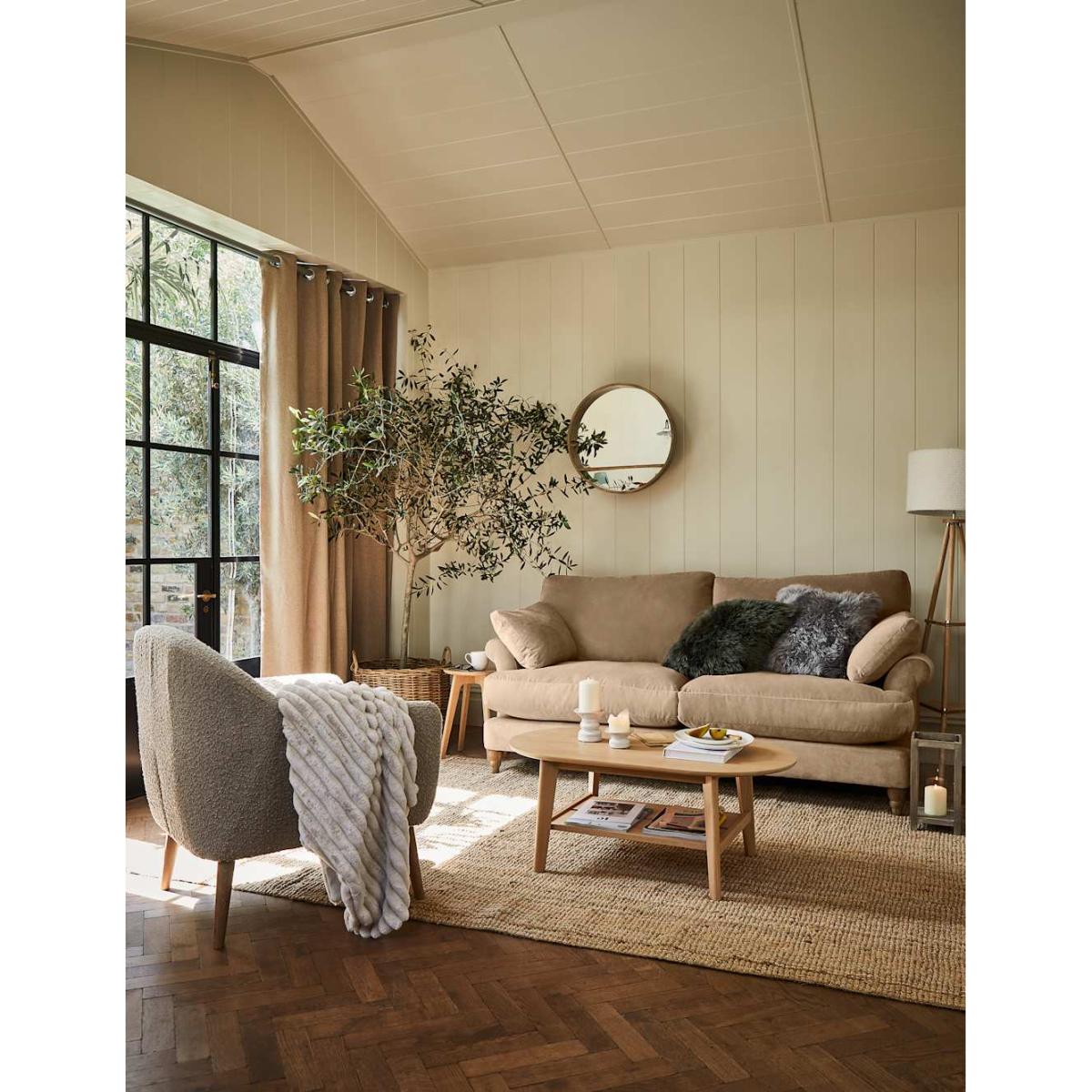 I’m a fan of this oak coffee table for its simple, sturdy build and warm wood tone - it’s especially at home in Scandi, contemporary or mid-century inspired living rooms. The low shelf is ideal for stacking coffee-table books or woven storage baskets, keeping the top clean for a decorative tray with a candle and a small vase. Its neutral finish also pairs well with textured rugs in muted tones and brass or black-metal accessories for subtle contrast.