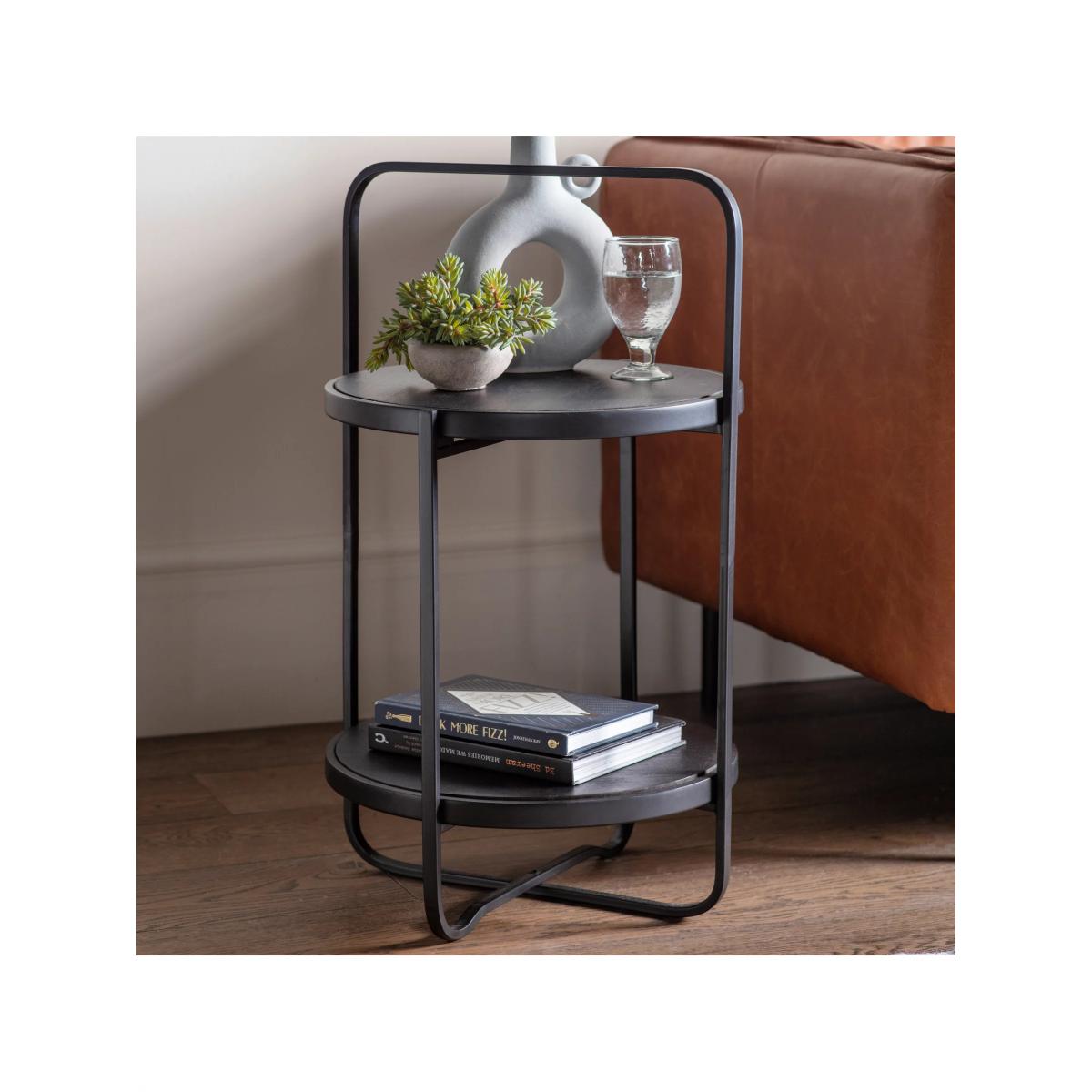 A perfectly proportioned side table to pair with your sofa or armchair. Designed with two shelves made from oak veneer, it's available in a natural or more striking black finish. The antique pewter-finished metal base continues up and around the side of the table, creating the illusion of a handle, while also giving the design an industrial edge. Just create a stack of your favourite reading material and kick back for a day on the sofa. Want to see it first? You may want to see and get a feel for the furniture in one of our shops before ordering. We'll be able to tell you where the range you'd like to view is on display.