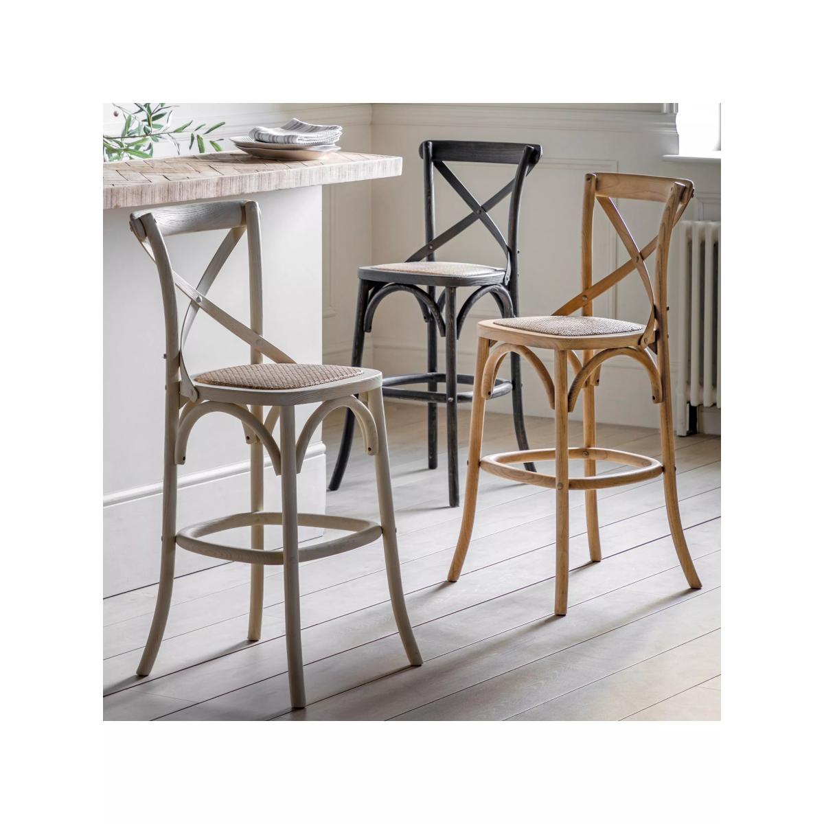 This set of two bistro style bar stool are perfect for enjoying your morning coffee and croissants. With an elegant cross back design, curved leg detail, solid rattan frames and hand woven rattan, they're perfect for bringing a little French cafe touch to your home. Want to see it first? You may want to see and get a feel for the furniture in one of our shops before ordering. We'll be able to tell you where the range you'd like to view is on display.