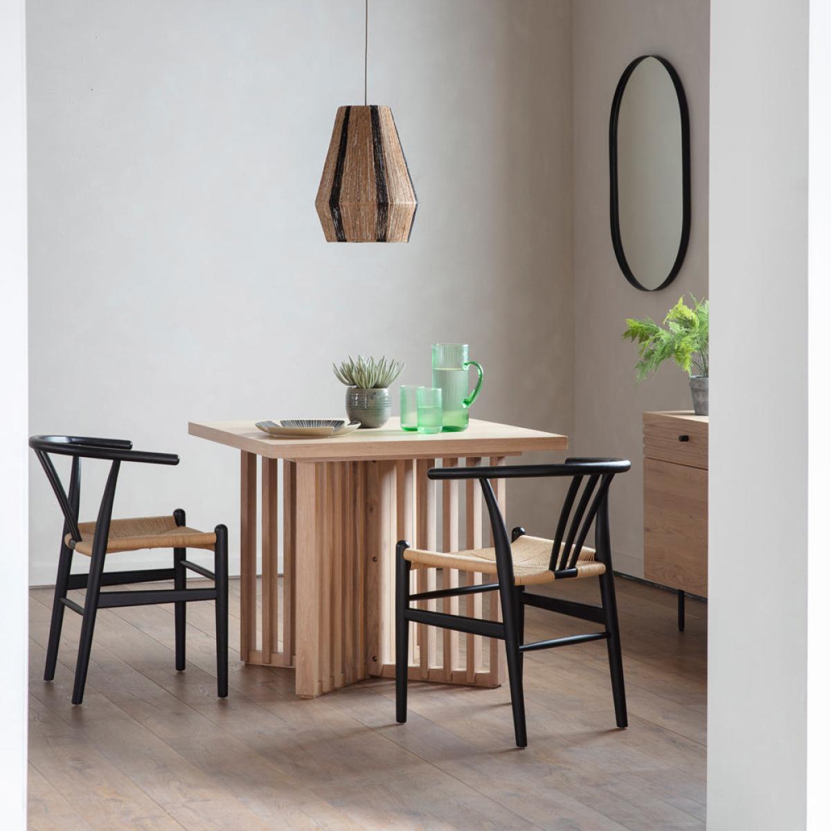 Seat your dinner guests in style with the Gallery Direct Okayama dining table. This beautifully finished table boasts a combination of solid oak and oak veneer, its natural colouring truly is beautiful. Its angled legs boast attractive slat details, adding interest to an already stunning piece of dining furniture. The natural elegance of the Okayama would pair well with several design schemes, allowing you a wide choice of dining chairs to suit your tastes. Available in two sizes, the small measures H: 75 x W: 90 x D: 90 cm, and the large measures H: 75 x W: 200 x D: 100 cm. *Moot Trading Ltd is not a lender and acts only as an introducer. The credit product is provided by Klarna Bank AB (publ). Credit is only available to permanent UK residents aged 18 and over, subject to status. Terms and conditions apply. Please note that the following products are not regulated by the FCA: Pay in 30 days and Pay in 3 instalments. Read More.
