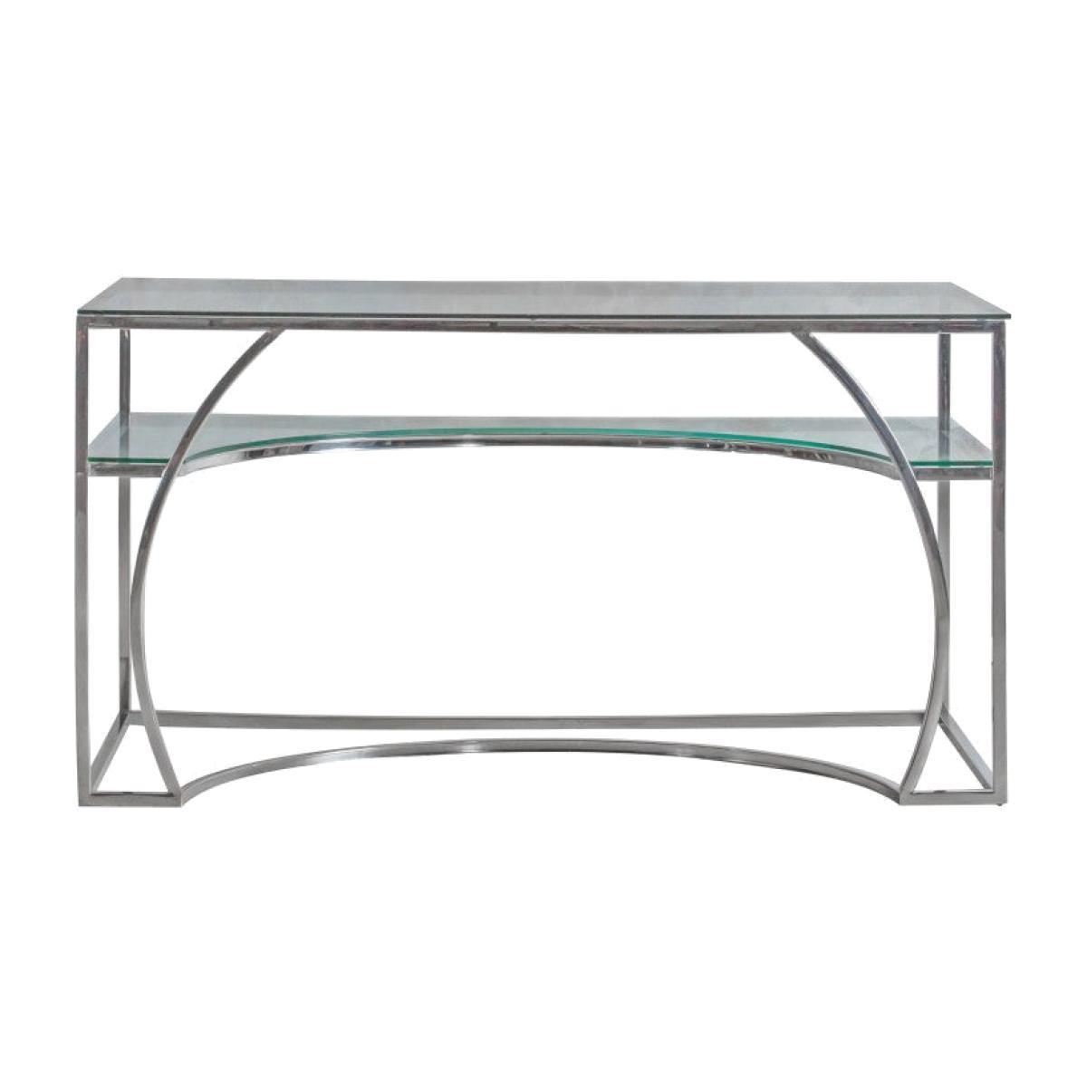 This eye-catching occasional table will provide the perfect focal point wherever you place it in your home. It offers a curve-shaped base, and the silver chrome metal curves up to a glass table top, making it look elegant. This piece also offers a curved glass shelf underneath that will house all of your storage needs. This piece can be used as a hall table to provide a focal point as you walk into the house and rest your essentials such as your keys, wallet and handbag, or place it in your living room to bring a fresh, modern feel to your space. *Moot Trading Ltd is not a lender and acts only as an introducer. The credit product is provided by Klarna Bank AB (publ). Credit is only available to permanent UK residents aged 18 and over, subject to status. Terms and conditions apply. Please note that the following products are not regulated by the FCA: Pay in 30 days and Pay in 3 instalments. Read More.