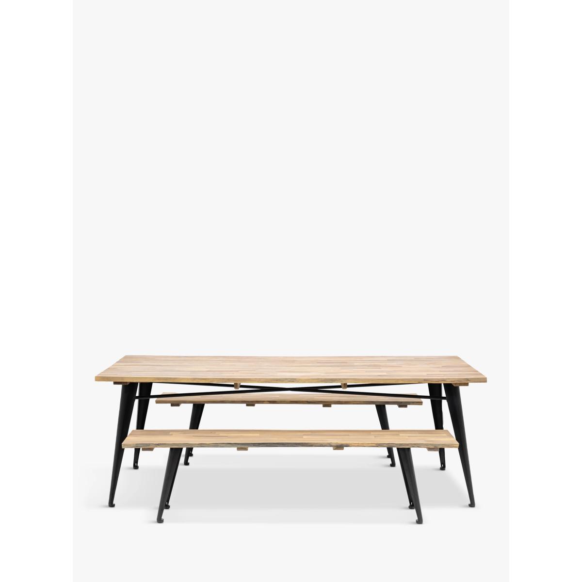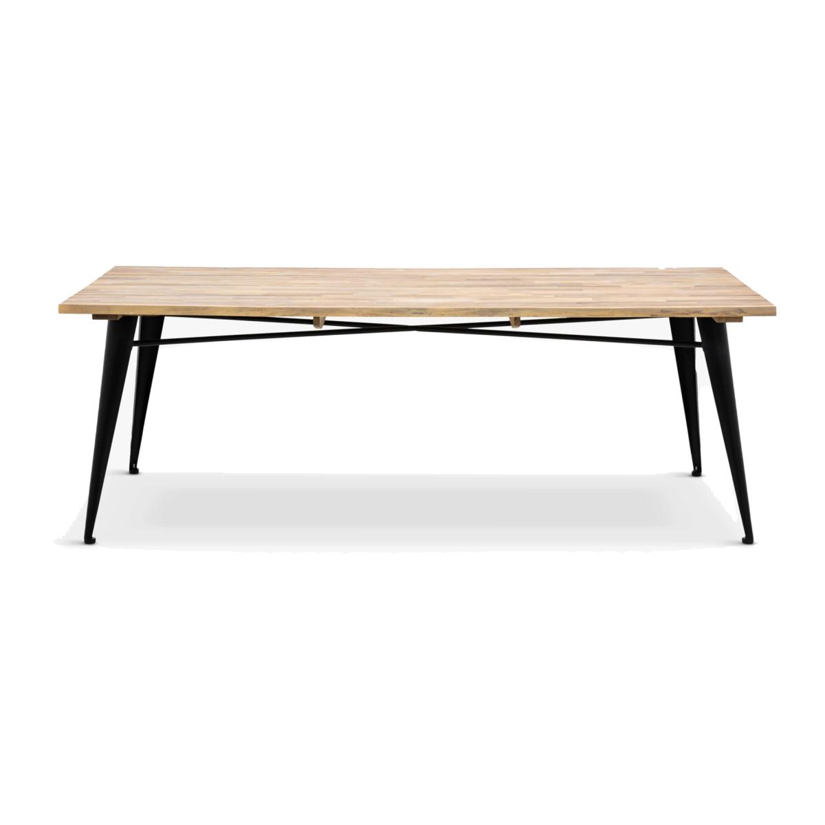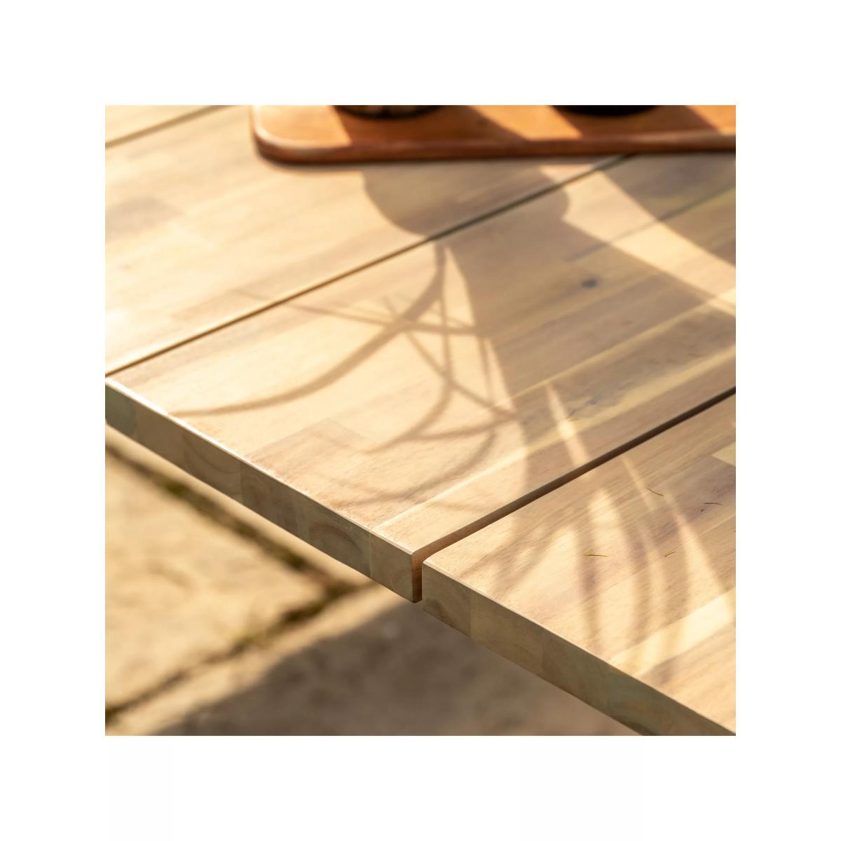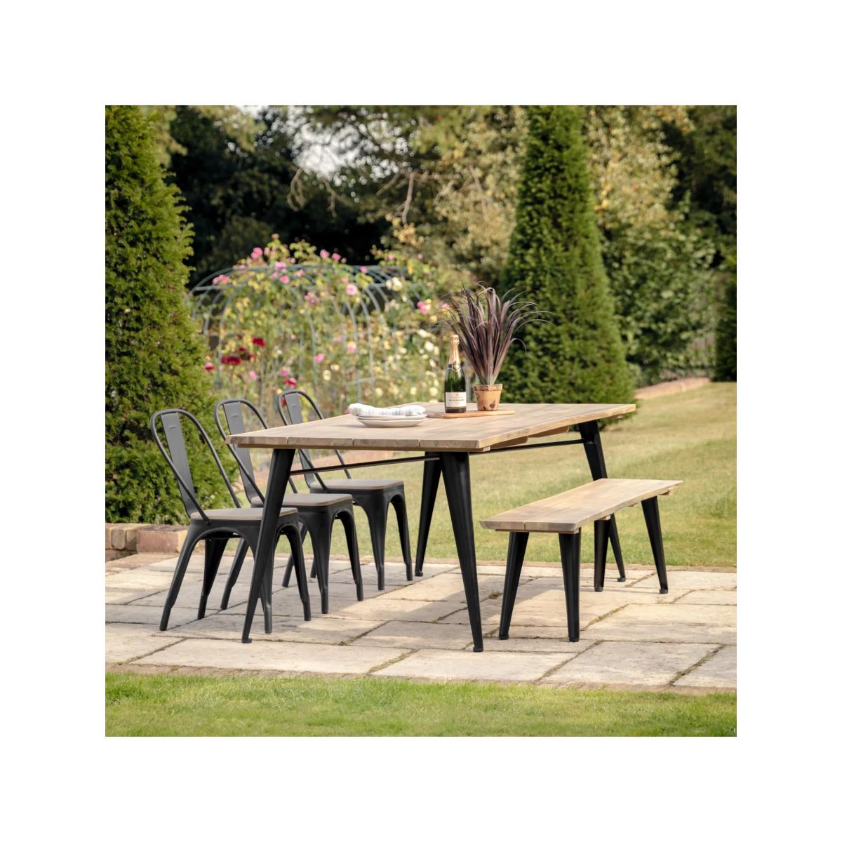 A modern industrial look for your outdoor space. This Ponza garden dining table from Gallery Direct has a rectangular slatted acacia wood top that's naturally weather-resistant and has a natural finish. This design is completed with contrasting industrial-style powder-coated iron legs. The table seats up to six people comfortably.