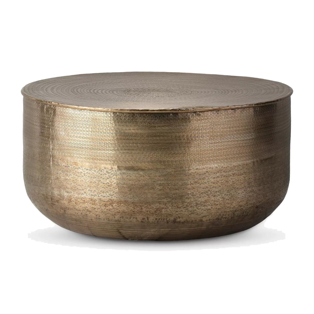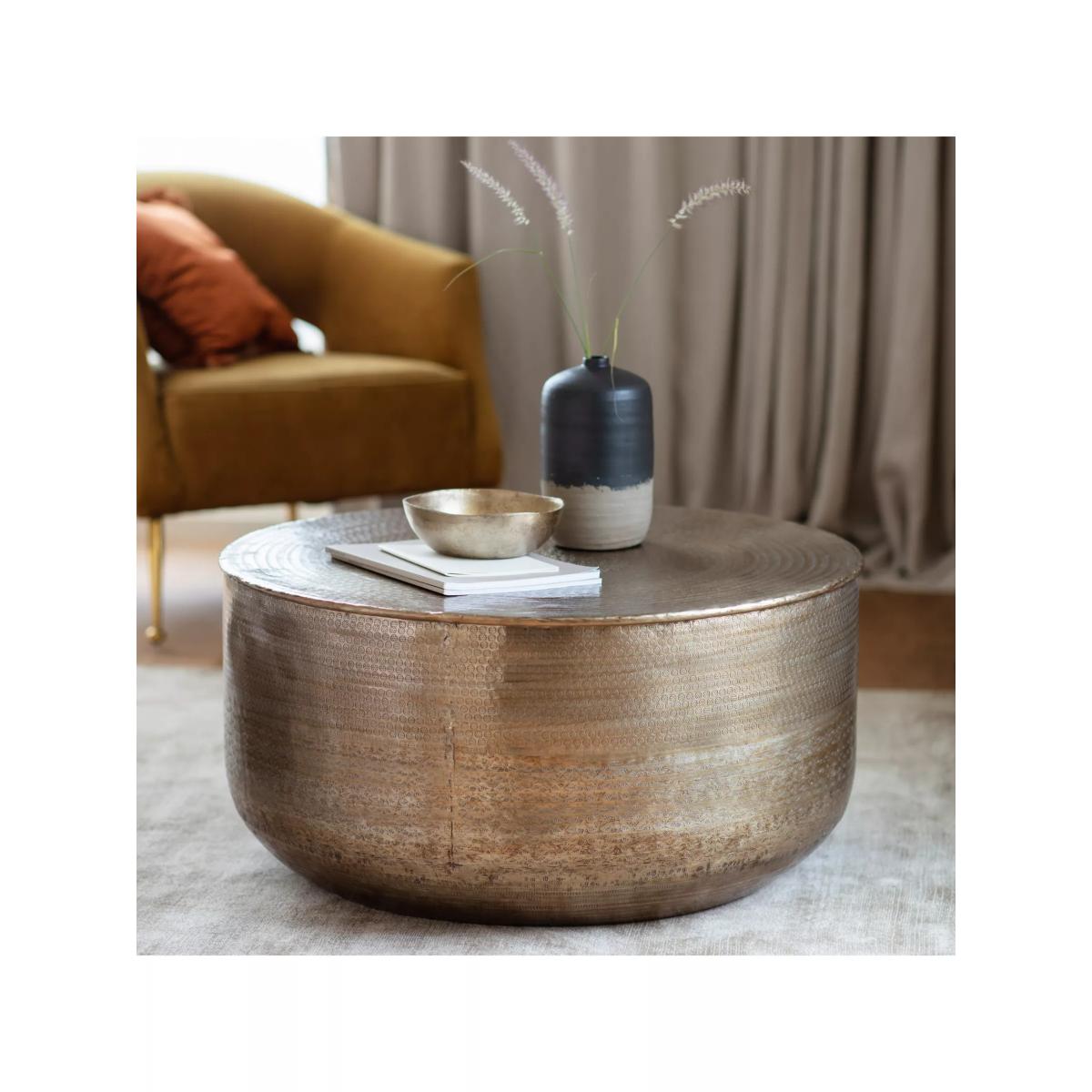 This brass effect coffee table features an artisanal style with a contemporary twist and is hand-pressed and embossed. Want to see it first? You may want to see and get a feel for the furniture in one of our shops before ordering. We'll be able to tell you where the range you'd like to view is on display.