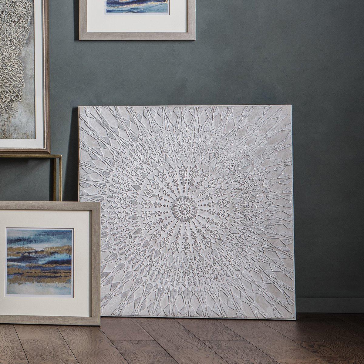 Complete the look of your interior with this beautifully designed Roshani white canvas. Rich in texture with a glitter finish, this beautiful canvas will add the finishing touches to your space. Exuding a subtle, yet fresh bohemian vibe, lose yourself in the spiralling detailed texture on its surface. *Moot Trading Ltd is not a lender and acts only as an introducer. The credit product is provided by Klarna Bank AB (publ). Credit is only available to permanent UK residents aged 18 and over, subject to status. Terms and conditions apply. Please note that the following products are not regulated by the FCA: Pay in 30 days and Pay in 3 instalments. Read More.