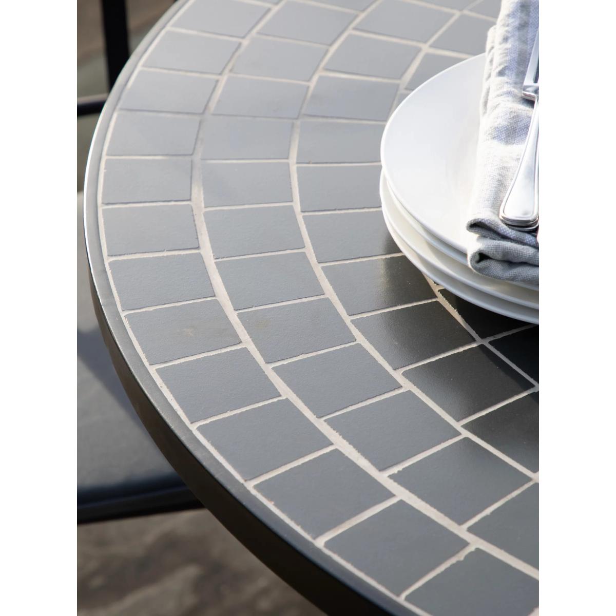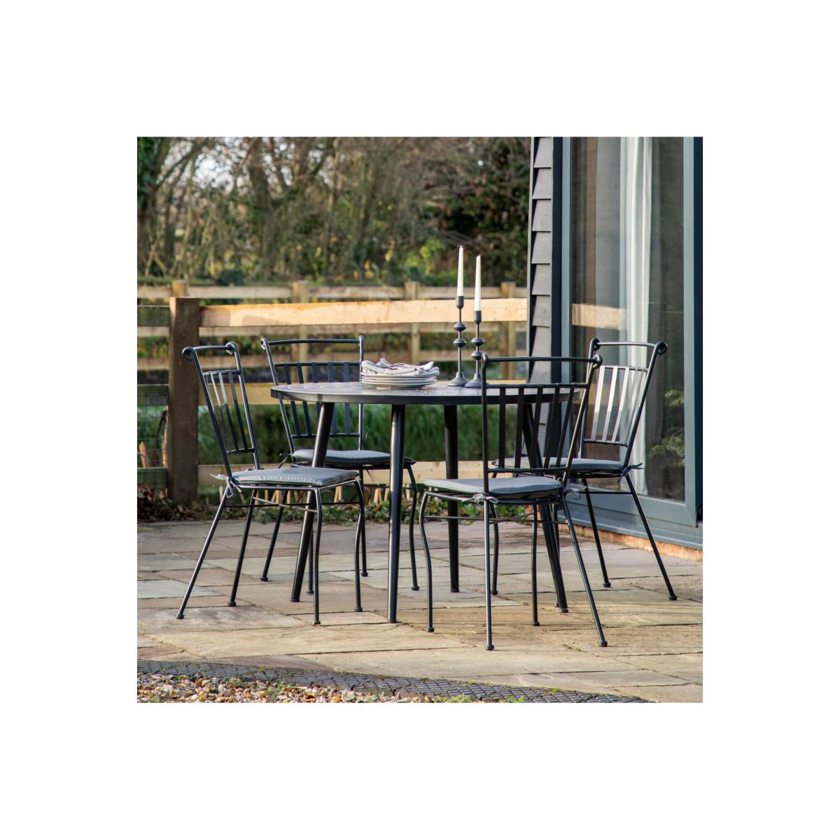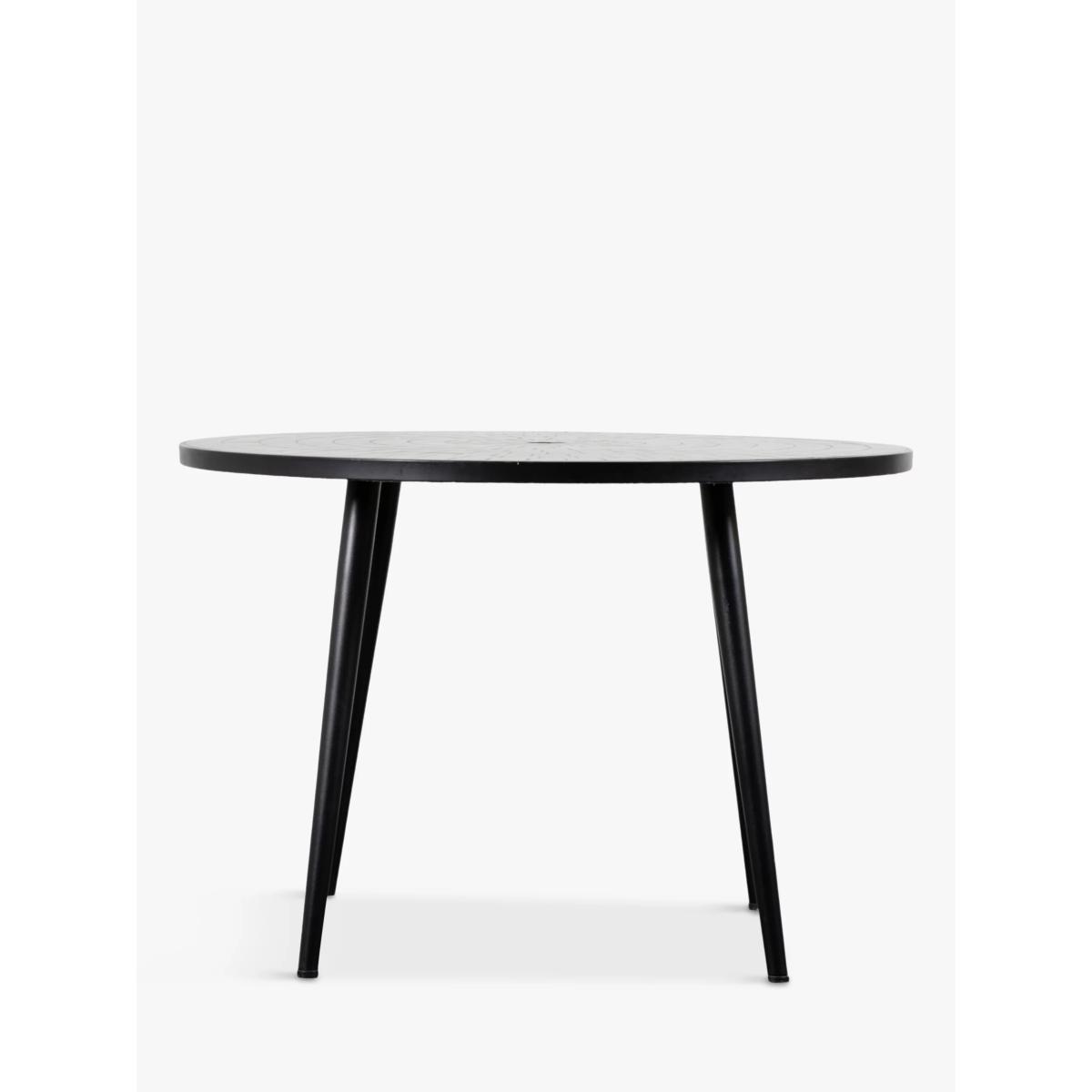 I love this round garden table for its contemporary mosaic design and sleek black finish, which makes it a versatile piece that works well in both modern and more traditional outdoor spaces. It’s perfect for creating a stylish al fresco dining area, especially in smaller gardens or patios where space is limited. Styling tips include pairing it with minimalist black or metal chairs for a cohesive look, or adding colour through cushions and tableware for a pop of vibrancy. Practicality-wise, its round shape encourages socialising and makes it easy to manoeuvre, while the mosaic surface adds visual interest and durability. It’s a great choice for those looking to elevate their garden aesthetic without sacrificing functionality.
