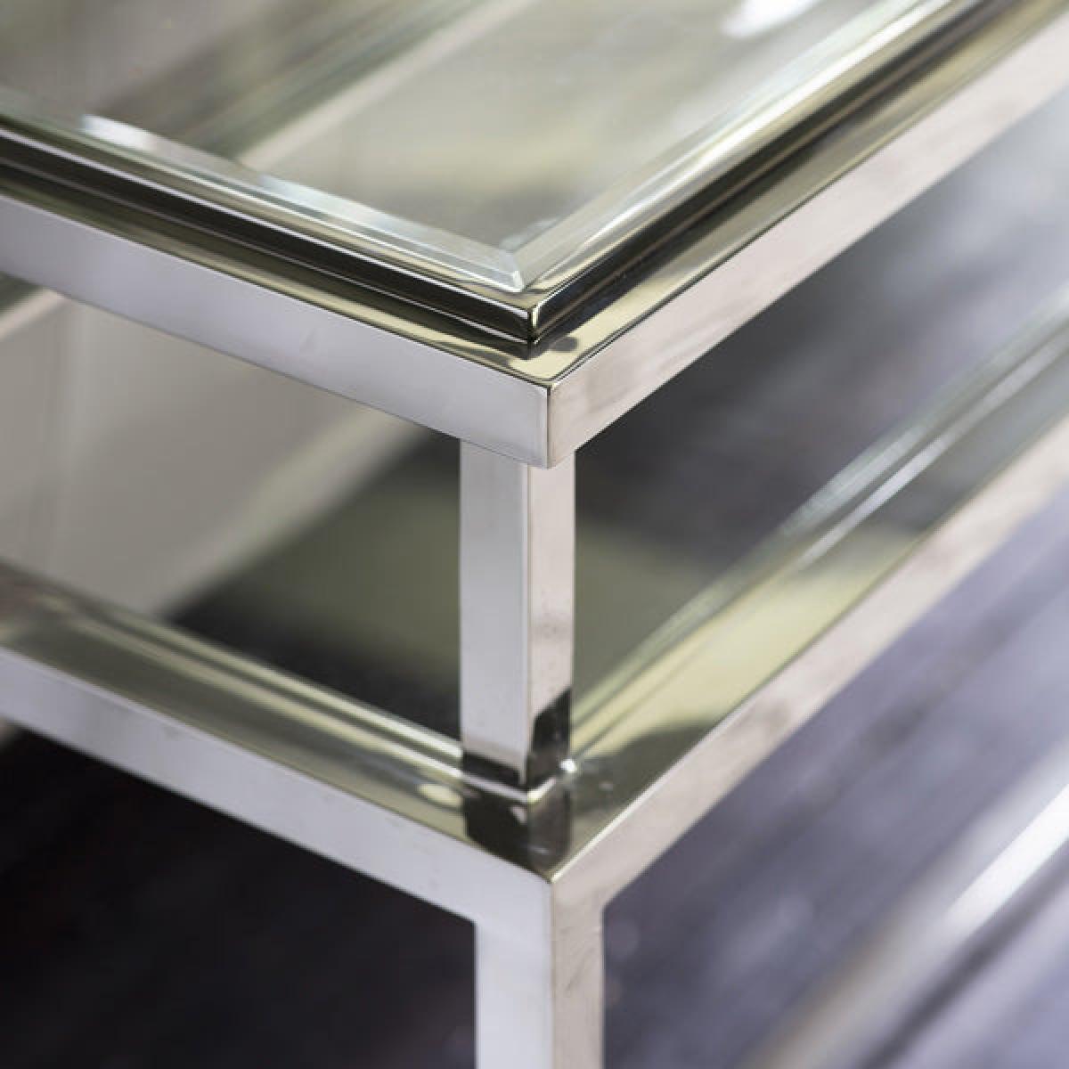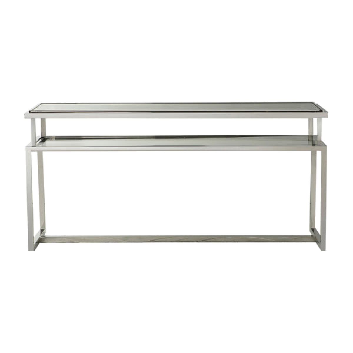 With its contemporary styling and modern clean-cut lines, this timeless and classic console table will give your living space a fresh, clean and chic aesthetic. The Salerno Console Table showcases two glass shelves for multiple display methods or additional storage, and the indenting of the supports between the shelves gives it an interesting shape. The silver-toned chrome frame is bright and eye-catching, making it both a practical and statement piece, whether it is used as a focal point in your hallway to showcase a select choice of display items or nestled against furnishings in your lounge as a complementary counterpoint to their soft fabrics. *Moot Trading Ltd is not a lender and acts only as an introducer. The credit product is provided by Klarna Bank AB (publ). Credit is only available to permanent UK residents aged 18 and over, subject to status. Terms and conditions apply. Please note that the following products are not regulated by the FCA: Pay in 30 days and Pay in 3 instalments. Read More.