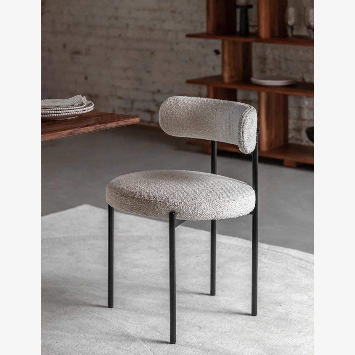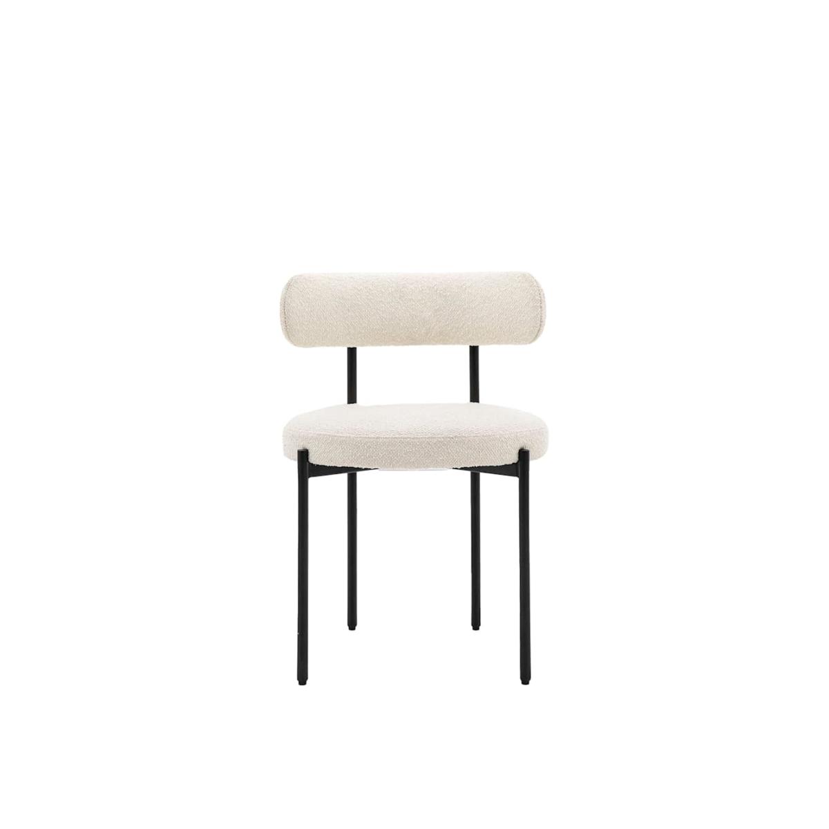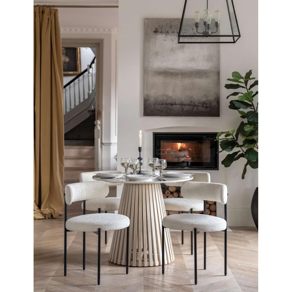 I’m a fan of these Aveley chairs for their boucle-style upholstery and slim black legs - they bring a subtle textural contrast to both minimalist and Scandi-inspired dining spaces. They work equally well alongside a rustic oak table or a sleek glass top, and their cream tone keeps the room feeling light. For a cohesive look, pair them with matte black accessories or a monochrome rug and introduce a woollen throw over the back to add warmth without clutter.