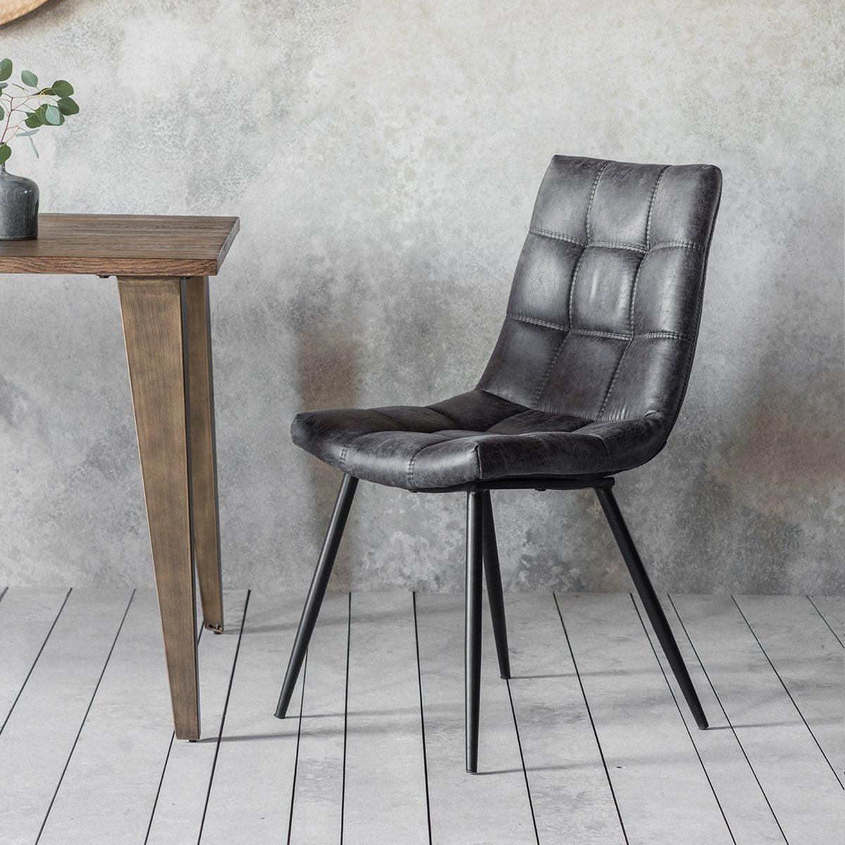 Gallery Set of 2 Darwin Grey faux Leather Dining Chairs, from Olivia's. Add the finishing touches to your dining area with this stunning pair of Dining Chairs. The perfect set to bring a rustic-meets-modern touch to your interior decor. This vintage-inspired Scandinavian styled chair has a warming appeal that looks. Fantastic grouped around your dining table. Finished with a character leather, the beautiful textures stand out, creating a subtle statement piece to your home. In an on-trend, charcoal grey colour, these chairs sit perfectly in any monochrome colour scheme or grey themed setting. Comfort and functionality allow this dining chair to work beautifully with any contemporary style. Thriving in an industrial, vintage or Scandinavian space. *Moot Trading Ltd is not a lender and acts only as an introducer. The credit product is provided by Klarna Bank AB (publ). Credit is only available to permanent UK residents aged 18 and over, subject to status. Terms and conditions apply. Please note that the following products are not regulated by the FCA: Pay in 30 days and Pay in 3 instalments. Read More.