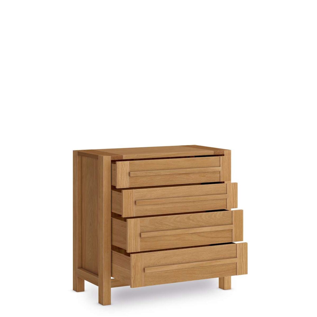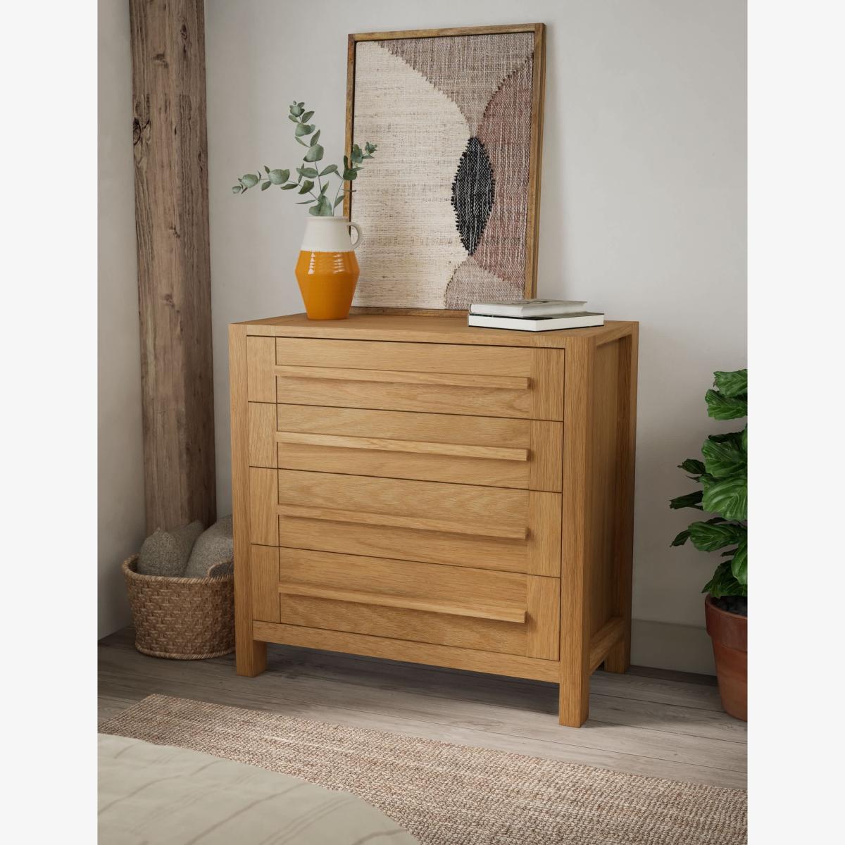 From our Sonoma™ collection we have this beautiful and expertly crafted four drawer chest that we’re sure you'll love. Made from a high-quality oak and oak veneer this wood chest will be great for rooms where space is hard to come by, as it features four full-width soft-close drawers for all of your storage needs. Featuring attractive clean lines and a warm oak colour, this versatile chest will look at home no matter the decor, while a protective lacquer finish ensures durability and long use. This drawer chest will look stunning with other furniture from the Sonoma™ range. Includes 1 Year Guarantee
