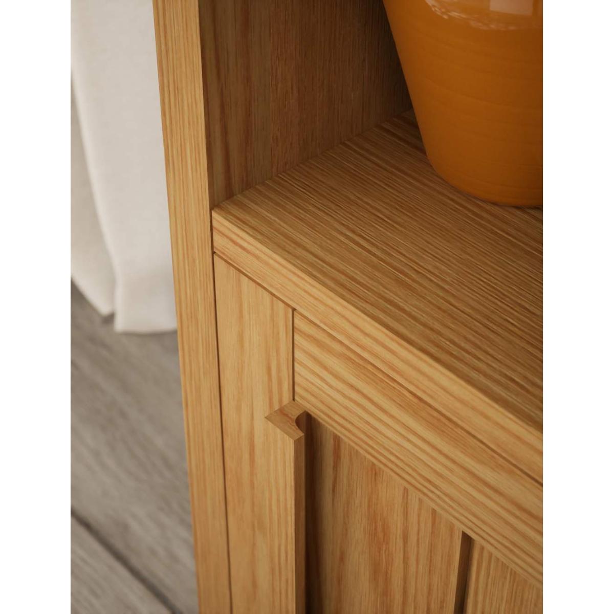Give your possessions pride of place with this Sonoma™ shelving unit with three shelves and cabinet space, offering ample space for all your favourite books, ornaments or Knick knacks. We’ve built this wooden shelving unit from predominately solid oak and oak veneer, giving it a light yet understated look with the natural feel and grain of wood. A low-sheen lacquer is the perfect finishing touch to protect this piece from damage so that you can enjoy it for longer. Includes 1 Year Guarantee