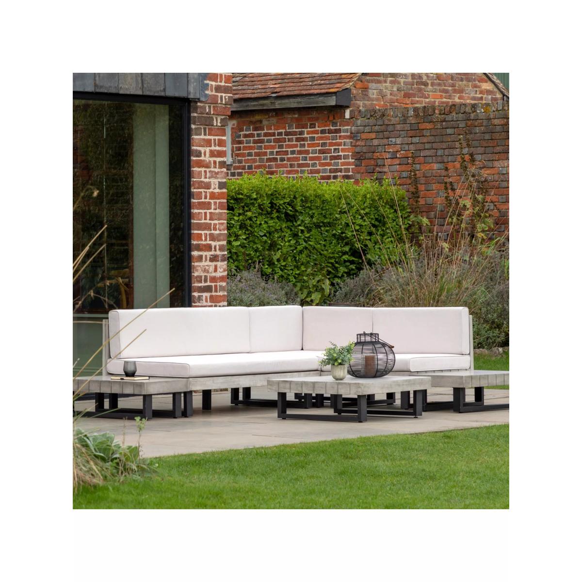 Create your own personal oasis with this stylish and comfortable Taranto corner sofa set. The acacia wooden frame of the corner sofa provides a durable structure, while the plush cushions offer a luxurious seating experience. The set includes a spacious corner sofa and coordinating coffee table and side table, giving you plenty of entertaining space for friends and family. A striking blend of modern design and raw industrial appeal, the set uses naturally weather-resistant acacia wood in a chunky design. The sleek black metal legs offer a touch of contemporary style. Key features: 5-seater corner garden sofa Square coffee table and square side table Naturally weather-resistant acacia wood frames and table tops Robust iron legs Shower-resistant seat and backrest cushions Weather-resistant and easy to maintain Part of the Taranto range of garden furniture